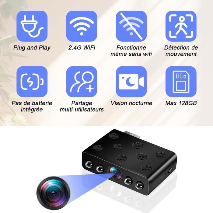 Caméra Avec Vision Nocturne Et Détection Mouvement Mini Sans Fil Enregistreur,HD1080P Magnetic Spy Cam WIFI Nanny Caméra Cachée Avec Camera Espion Elle prend en charge les cartes micro SD de 8 Go à 32 Go (non incluses) Caméra Espion,Mini Caméra Cachée Hd 1080P - 720P Spy Cam Sans Fil Petite Détection De Mouvement... Caméra Intelligente HD 1080P - Un objectif HD 1080p intégré avec un design portable et compact facilite la vidéo et la photographie. Cette mini camera espion sans fil est facile à utiliser, et sa fonction de vision nocturne fournit des images claires dans l'obscurité ou la nuit. Vision Nocturne - Cette caméra espion prend en charge les opérations nocturnes. Le design compact permet à cette mini camera de fonctionner pendant plus de 90 minutes après une charge complète, ce qui rend le transport pratique en déplacement Détection de Mouvement Sensible - La résolution camera espion discrete offre des enregistrements clairs et fluides. Facile à Utiliser et Stockage en Boucle - Équipé de 3 boutons pour différentes opérations, la petite camera espion sans fil garantit une fonctionnalité conviviale. Lorsque la mémoire de la carte microSD est pleine, les anciens fichiers sont automatiquement supprimés. AOBOCAM Camera Espion, 1080P Mini Caméra de Surveillance sans Fil avec Enregistrement WiFi