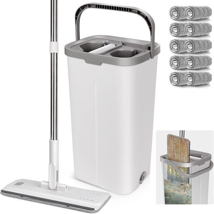 Balai Télescopique 360 Balai Magique Microfibre Avec Seau Double Bac - Nettoyage Sol Facile - Manche Télescopique - 2 Serpillères Seau Double Bac Essorage Facile Balai serpillère en microfibre pour nettoyage du sol, auto-presseur en... Balais Nettoyer Sol Balai Plat Microfibre Et Seau Essoreur, Balai Serpillère Et Seau Kit Nettoyage Sol Spécifications : 1., Nom du produit : serpillière plate., 2., Matériau : ABS + fibre + acier inoxydable., 3., Champ d'application : parquet, carrelage, marbre et autres., Avantages : 1., Mains libres, pas besoin de changer les serpillères quand vous êtes sale. Léger et facile à utiliser, facile à ranger dans des petits espaces comme un placard ou sous un évier. Balai de nettoyage complet pour le sol Seau de nettoyage avec 10... Insérez simplement la serpillère dans le bac d'évier pour enlever la saleté et les débris. Vous pouvez économiser plus d'espace en segmentant la poignée et en la rangeant dans le seau après utilisation. La force de l'utilisation est un matériau à haute résistance afin de garantir la fiabilité et la stabilité de la serpillère Tête de balai plate en microfibre, avec une technologie de production avancée, douce, non pelucheuse, propre, solide, anti-rayures et sans odeur ni moisissure.