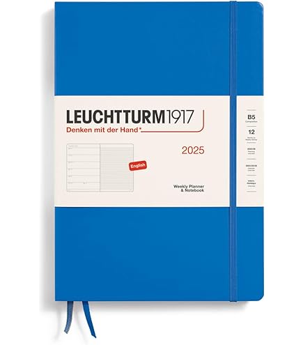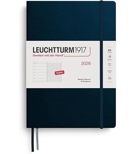 Leuchtturm Daily Planner LEUCHTTURM1917 372645 - Agenda Semainier Et Bloc-notes - Composition Weekly Planner Acheter Rising Sun (Anglais) - la boutique du jeu de société Carnet De Notes Composition B5 , Couverture Rigide, 219 Pages Num Rising Sun Ligne Notre agenda hebdomadaire et carnet est fabriqué en papier FSC sans acide de 80 g/m², qui présente une haute résistance à l'encre. Achetez LEUCHTTURM1917 372645 - Agenda semainier et bloc-notes - Composition (B5) - 2026 - Rising Sun - En anglais : Agendas civils et carnets de RDV Vérifie ça... Avec fermeture élastique, deux marque-pages et une poche pliante dans la couverture, ainsi que des étiquettes de titre et de dos pour écrire et archiver., Dimensions : 178 x 254 mm 12 mois (du 1er janvier 2026 au 31 décembre 2026), la symbiose parfaite de calendrier et de carnet avec couverture rigide au format Composite (17,8 x 25,4 cm). Le modèle populaire de calendrier combine nos aides quotidiennes préférées, le calendrier et le carnet de notes de manière particulièrement claire. L'agenda hebdomadaire et le carnet offrent une semaine complète sur la page de gauche et une page lignée à droite pour des notes supplémentaires.