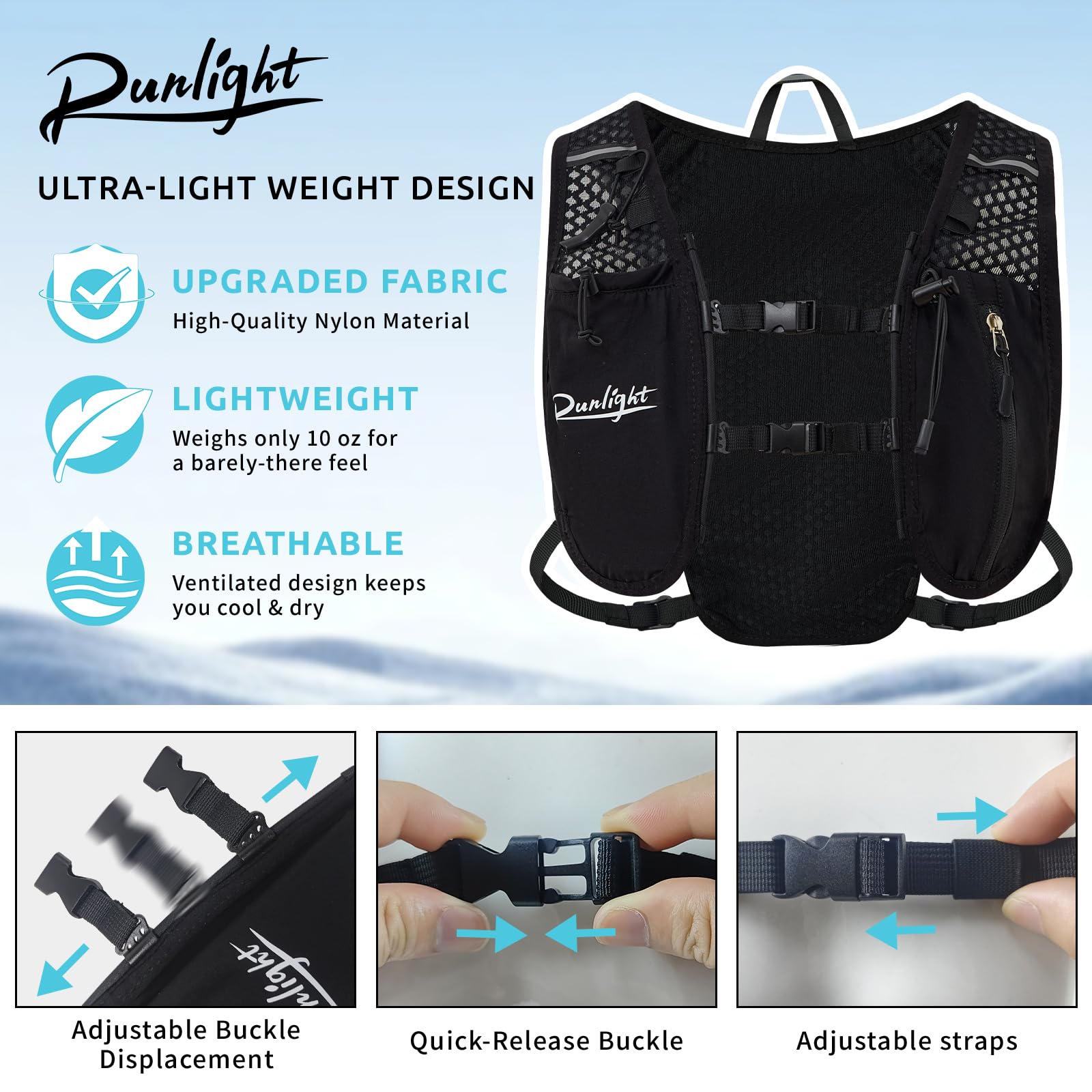 USWE Sac à Dos Hydratation - Vest Rush 8L - noir - Taille S Gilet de course pour femme : le gilet de cyclisme léger a une ceinture ventrale réglable et des bretelles qui peuvent être modifiées pour s'adapter à votre torse. Gilet De Running Homme Gilet De Course Pour Homme Et Femme, Sac à Dos D'hydratation Réglable Gilet Pour Courir La poche d'hydratation dispose d'une résistance complète à la pression et d'une fonction étanche, assurant un approvisionnement suffisant en eau pendant divers activités de plein air. Les runners débutants peuvent utiliser un sac. Il s'agit d'une solution facile pour emmener votre smartphone, vos clés et éventuellement vos papiers d'identité pendant la course. Découvrez notre offre des sacs à dos et des vestes de running pour les amateurs de marathons, de trails et d'ultratrails SUBZONAL-G220 Gilet de course pour homme et femme, sac à dos d'hydratation réglable, respirant et réfléchissant avec poche d'eau de 1,5 l pour randonnée... Ce gilet de course avec poches de rangement sur les épaules et une grande poche en maille à l'arrière, permet de ranger vos gels énergétiques, collations, clés, argent, serviette et tout autre élément essentiel dont vous avez besoin pendant la course. Notre poche à eau de course de 1,5 L est conçue de manière unique pour rétrécir lorsque vous buvez, combinée avec le cordon de serrage pour garantir que la bouteille d'eau ne glisse pas, ne rebondit pas ou ne cliquete. C'est le sac à dos d'hydratation conçu pour les hommes, les femmes et les jeunes. Le tube d'eau (101,6 cm de longueur) fournit un débit sain pour boire facilement. Beaucoup de rangement : le logo réfléchissant et la bande à l'avant et à l'arrière augmentent la sécurité dans les scénarios de faible visibilité. Runlight Sac à dos de course avec un design unisexe et 2 sangles de poitrine réglables, vous permet d'obtenir sans effort un ajustement confortable et confortable pendant vos courses.