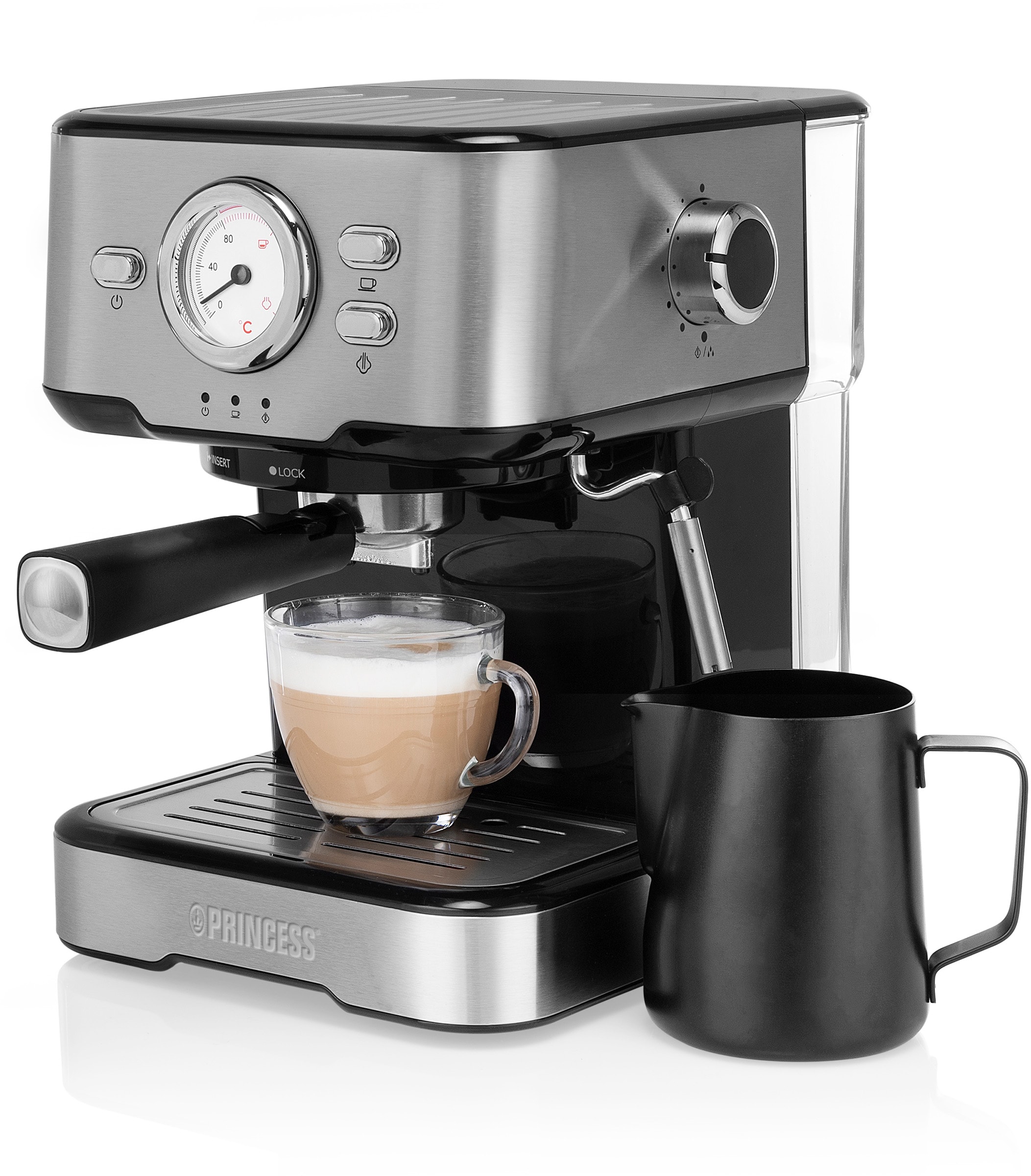 Cafetière à broyeur conique intégré Princess Deluxe - 6 tasses - Réglable & maintien au chaud La cafetière avec Wi-Fi Moments de la marque Princess, une machine à café à la fois pratique et élégante, peut préparer jusqu'à 15 tasses en un tournemain ! La machine à café Princess est livrée avec une carafe en verre d'une capacité de 1,5 litre Cafetière Filtre Princess Cafetière À Mouture Et À Infusion Roma 1050 W Noir à Prix Maintien Au Chaud Antigoutte Contrôlez votre cafetière connectée via l'application gratuite HomeWizard Kitchen sur votre smartphone ou iPhone et profitez de votre café au moment souhaité. Utilisez aussi le contrôle vocal ou le panneau de conrôle numérique de la cafetière pour effectuer vos réglages. Princess Cafetière programmable et connectée Moment Breakfast - 1,5 L - 900 W - Avec appli gratuite. 67,99 €. Meilleur prix total. 67,99 € livraison incl... Lancez la préparation au saut du lit par exemple, pour qu'il soit prêt au moment où vous prenez votre petit-déjeuner. C'est idéal pour un moment en famille ou entre amis. Contrôlez-les depuis votre smartphone, avec le contrôle vocal ou via leur panneau de contrôle intégré. La fonction de maintien au chaud vous assure que votre café soit encore chaud lorsque vous souhaitez le déguster.