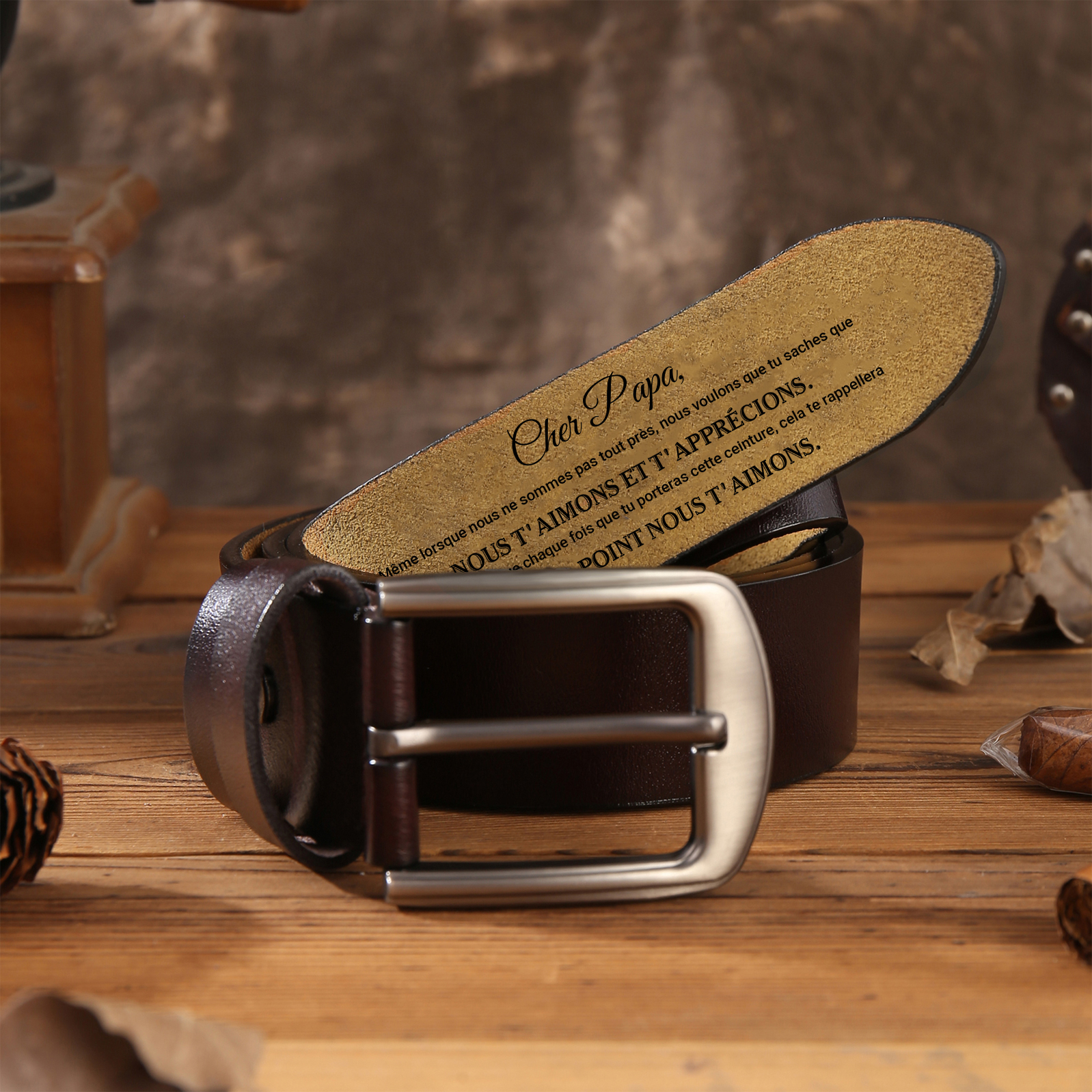 Elle constitue un excellent cadeau pour la fête des pères, les anniversaires, Noël ou comme cadeau pour le marié, et peut également être utilisée comme cadeau pour le témoin ou comme cadeau d'invité. C'est le cadeau idéal pour les hommes, les maris, les pères, les grands-pères ou les petits amis. Ceinture Tommy Hilfiger Homme À Papa/Papi - Ceinture En Cuir Personnalisé Avec 3 Textes Et Lettre Cadeau Pour Homme | Cadeau Fête Des Pères | – FR Ceinture Cuir Véritable Ajustable Ceinture en cuir véritable de qualité supérieure ♥ cette ceinture pour homme est fabriquée à partir de cuir pleine fleur, offrant un toucher doux et souple... ♥ Conception ajustable ♥ la ceinture mesure environ 130 cm de long et 3,5 cm de large, avec une taille standard qui convient à la plupart des tours de taille. Cette ceinture pour homme en cuir véritable personnalisée est le cadeau idéal. Que ce soit pour le travail, les tenues décontractées ou les événements formels, elle incarne le goût raffiné d'un gentleman mature. Évitez l'exposition directe au soleil et le séchage à haute température afin de prolonger la durée de vie du cuir. La boucle est amovible. Fabriquée à partir de cuir pleine fleur, elle présente une texture lisse et un design souple mais structuré. La gravure personnalisée ajoute une valeur émotionnelle unique à la ceinture, la rendant à la fois pratique et significative. ♥ Ceinture en cuir véritable de qualité supérieure ♥ cette ceinture pour homme est fabriquée à partir de cuir pleine fleur, offrant un toucher doux et souple qui développe un éclat naturel au fil du temps. Matériau : fabriquée à partir de cuir de vachette double épaisseur, cette ceinture en cuir véritable présente un grain naturel et est très confortable. Ses... En suivant les instructions illustrées, il suffit d'ouvrir les dents de la boucle, de couper l'excédent de cuir, de réinsérer la ceinture dans la boucle et de la fixer en appuyant sur les dents de positionnement pour terminer le réglage de la longueur, garantissant ainsi un ajustement précis et confortable. Nous recommandons un nettoyage à sec ou un essuyage délicat avec un chiffon sec ; en cas de taches, utilisez une petite quantité de détergent neutre pour nettoyer la zone. Sa longueur est réglable et elle peut être coupée pour s'adapter à la taille de chacun. Belt & Cie Ceinture cuir homme marron, ARMEL, réglable du 36 au 50