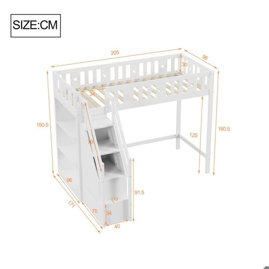 Le côté de l'échelle est interchangeable (gauche/droite) pour s'adapter à votre configuration de pièce et optimiser votre circulation Lit 1 Personne 90x200 Complet Lit Mezzanine En Bois De Pin Et MDF - 90x200 Cm - Avec étagères Au Conforama Lit 90x200 Avec Sommier Nombre de colis : 3 Poids total du produit : 65 kg Capacité de charge : 120 kg Épaisseur de matelas recommandée : 8-10 cm Caractéristiques : Type de produit : Lit mezzanine Dimensions : 90 x 200 cm Couleur : Blanc Matériau : Pin + contreplaqué + MDF Niveau d’assemblage : Assemblage complet requis/Assemblage partiel Poids total du colis : 71 kg Nombre de lattes : 16 Temps de montage estimé : 1 heure Nombre de personnes recommandé : 2 Outils supplémentaires requis : Tous les outils sont inclus/Tournevis Éviter l’utilisation d’outils électriques : Oui Avertissement De Sûreté Lire attentivement les instructions de montage et d'utilisation. Lit mezzanine 90x200 cm - avec étagères et échelle de rangement - en bois massif - Blanc. 507,99€. 707,99€. Ajouter au panier. Lit mezzanine 90x200 cm, lit... Multifonctionnalité et gain de place : Ce lit mezzanine intelligent libère un espace généreux en dessous pour créer un bureau, un coin détente ou un espace de rangement selon vos besoins. Idéal pour les chambres doubles ou les studios, il maximise votre métrage carré sans encombrement Lit mezzanine enfant Lit adulte 90 x 200 cm en fer avec bureau et trois... Sécurité optimale et design unique : Gardez l'esprit tranquille grâce à notre porte de sécurité exclusive avec fenêtre intégrée et son design triangulaire renforcé. Respecter les limites de poids et les précautions pour éviter les blessures ou les dommages. Gardez vos livres, lampes ou objets personnels à portée de main dans un design épuré qui évite le désordre Lit mezzanine 90x200 cm - avec étagères et échelle de rangement - en bois massif - Blanc Ne pas utiliser de couettes ou de couvertures qui peuvent couvrir le visage de l'enfant et causer un risque d'étouffement. Installation adaptable et accès sécurisé : Montez et descendez en toute confiance avec notre échelle latérale équipée de mains courantes sécurisées.