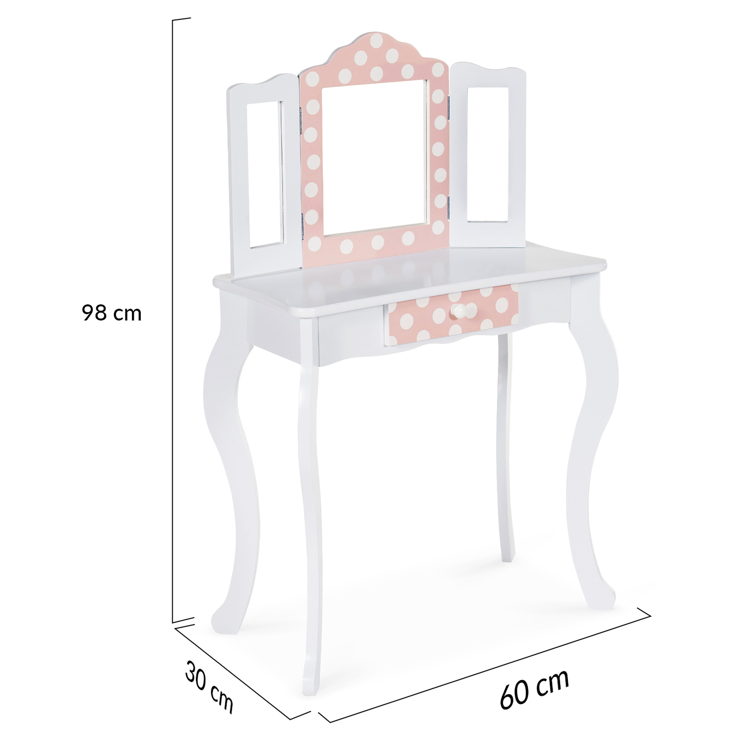 Led Coiffeuse Fille Coiffeuse Enfant BETTANY IDMarket - Blanc Et Rose Avec Miroir Et Tabouret, 60x30x110cm Coiffeuse Fille Bettany Coiffeuse Avec Miroir Coiffeuse Enfant Rose Avec Tabouret, Table De Maquillage Avec Miroir à Trois Panneaux Et Tiroir, 70 - Coiffeuse enfant COSTWAY Coiffeuse pour Enfant - 3 Miroirs Pliant Amovible, 1 Tabouret... Cette jolie petite coiffeuse rose et blanche avec tabouret assorti sera du plus bel effet dans la chambre de votre enfant. Son triple miroir avec LED et ses pieds aux lignes courbes en font un meuble digne des plus belles princesses. Son tiroir central coulissant de 25 cm de largeur offre un bel espace de rangement pour y ordonner discrètement bijoux, maquillage, chouchous, et autres accessoires de beauté pour une chambre bien rangée ! Coiffeuse de princesse par excellence, ce meuble ravira votre enfant ! En offrant la table de maquillage ROZA avec tabouret à votre enfant, il disposera d'un espace agréable, bien à lui et fonctionnel pour imiter les grands, se coiffer et s'apprêter ! Une jolie coiffeuse pour enfant avec tabouret assorti, pour faire comme les grands ! Dotée d'un tiroir coulissant au motif rose à pois blancs et d'un grand plateau supérieur Le triple miroir à bords rabattables permettra à votre enfant de s'admirer sous tous les angles et le tiroir d'y ranger bijoux, maquillage et accessoires. Une...