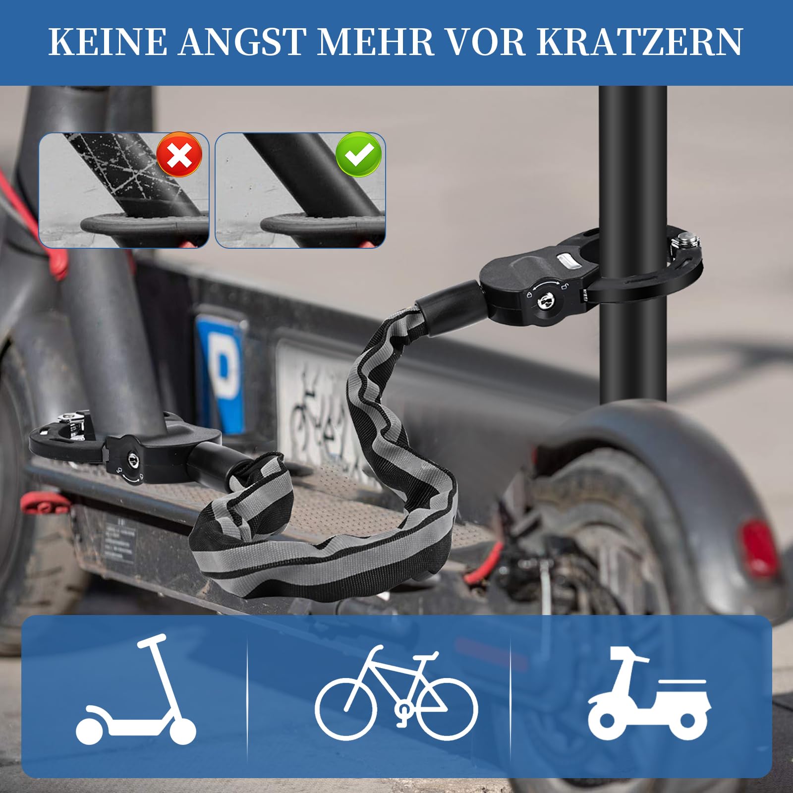 Masterlock Antivol Menottes Trottinette MASTER LOCK Compatible avec des colonnes de différentes tailles, il offre une plus grande polyvalence ! Antivol Trotinette Electrique Gaethra , Cadenas Trotinette, Menotte Antivols Velo Avec Clés Et Sac Etanche, Chaînes Antivol Pour Bicyclette, Scooter, Vélo Electrique, Trottinette Auto-Equilibrée Chaîne Antivol Acier 87cm Facile à installer et à retirer, il est également facile à ouvrir et à fermer. PLUS PRATIQUE : L'antivol pour trottinette a une longueur totale de 87 cm et une chaîne de 60 cm, vous n'aurez donc plus jamais à vous soucier du stationnement Honszex Cadenas Trotinette Electrique, Antivols pour Velo et... Vous n'avez donc pas à vous soucier des rayures sur votre trottinette. RÉSISTANT AUX RAYURES : L’antivol pour trottinette est équipé d’une coque de protection en silicone. ce cadenas offre une solution de sécurité multifonctionnelle pour divers véhicules. Notre antivol est principalement fabriqué en acier robuste de haute qualité et ne pèse que 1 350 grammes ! Le revêtement en silicone résistant à l'usure prévient les taches et les rayures. AUCUNE INQUIÉTUDE DE VOL : Votre trottinette électrique est aussi sécurisée que nos antivols sont lourds !