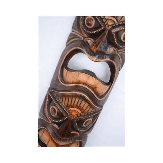 C'est un être mi-homme, mi-dieu qui confère pouvoir, force et protection contre les dangers. Clause de non-garantie Création artisanale : quelques différences d'aspect ou de couleur sont possibles par rapport au modèle photographié, ainsi que de légères imperfections, preuves de l'authenticité de chaque pièce. Tel un talisman, il confère pouvoir, force et protection contre les dangers. Le tiki représente leurs anciens dieux et de lointains ancêtres mythiques. Artisanat Tahiti Décoration 50cm Motif Cocotier - Décoration Tahiti Artisanale Masque Tiki Bois Fabrication artisanale issue du commerce équitable. Les Polynésiens le vénéraient et le craignaient. Masque Tiki Polynésien en bois 50cm. Décoration et artisanat de Bali... Hauteur 50 x Largeur 13 x Profondeur 5cm environ. Une attache est présente à l'arrière pour accrocher facilement le masque. Le tiki est un être mi-homme, mi-dieu de la tradition polynésienne. Talisman Protection Commerce équitable Totem Bois, Tiki Polynésien Et Sculpture Sculpté Sur Coco Papaya Masque Japonais Chaque masque, mesurant 50 cm, raconte une histoire, révélant la symbolique profonde du tiki qui représente la force, la sagesse et la connexion spirituelle En choisissant cet objet, vous soutenez la création artisanale et contribuez à la préservation des savoir-faire traditionnels.