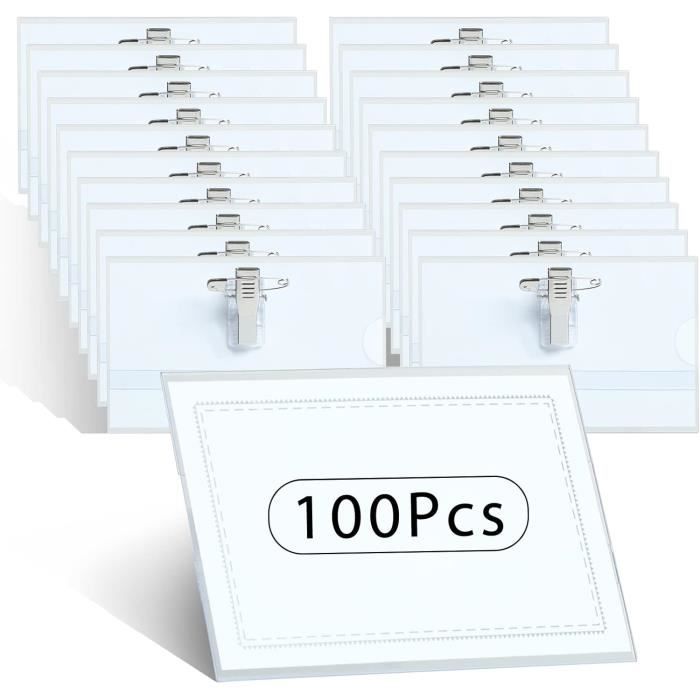 Badge Acrylique Avec épingle Porte-badges Avec Pince Crocodile Et épingle à Nourrice,porte Badges Porte-badges Porte-cartes D Badges Plastique Transparent Lot de 10 étiquettes nominatives transparentes de 90 x 56 mm avec clip et épingle, idéales pour les vêtements, porte-badges pour l'école, le bureau, les conférences, les entreprises et les événements Badges avec clip épingle boite de 50 | Contact MON BUREAU ET MOI Conception multifonctionnelle : Ce badge convient non seulement aux employés des entreprises, mais aussi aux conférences, expositions et événements divers. Lot de 100 badges noinatifs, 90 x 56 , en plastique transparent... Les utilisateurs peuvent insérer leur carte de visite dans le badge pour que les autres les reconnaissent plus facilement, ce qui est très pratique. Simple et facile à utiliser, il est parfait pour les environnements de travail rapides. Matériau de haute qualité : Le badge est fabriqué en acrylique transparent de haute qualité et résistera à de longues périodes d'utilisation. Design transparent : Le design transparent de ce badge permet une présentation claire et attrayante des cartes de visite.