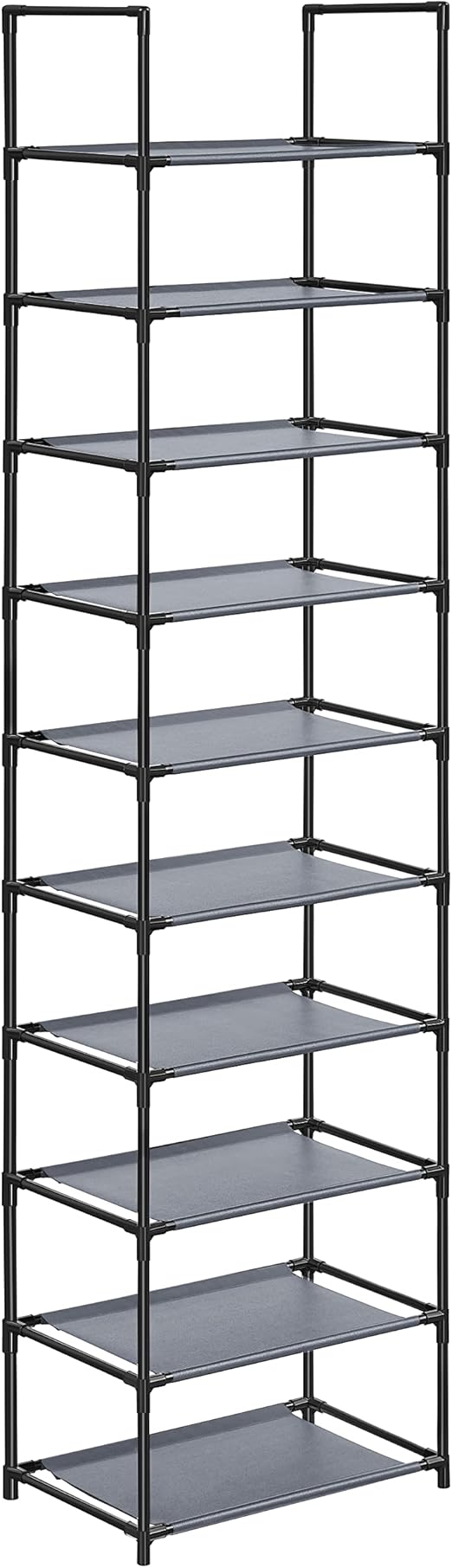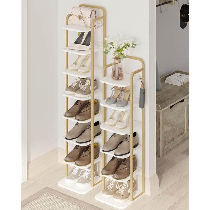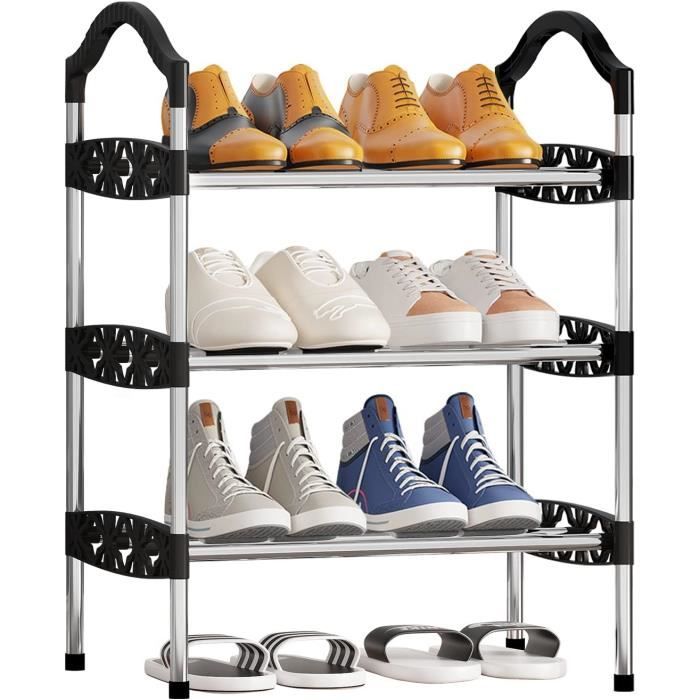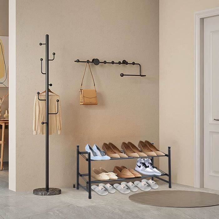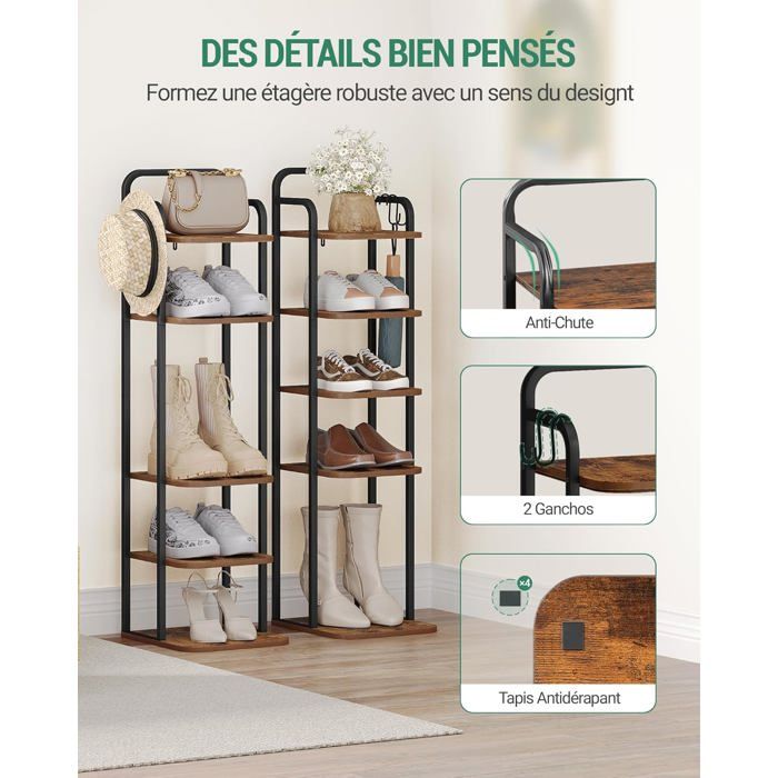Sa structure en tubes d'acier inoxydable assure un rangement stable et idéal pour chaussures lourdes Gardez votre couloir bien rangé pour pouvoir vous déplacer librement, sans craindre de trébucher sur des chaussures Les pieds lestés et antidérapants stabilisent l'étagère au sol, vous permettant de ranger vos chaussures sans craindre qu'elle ne vacille Les barres épaisses garantissent une haute capacité de charge, sans déformation même après des années Rangement à chaussures en métal à 6 niveaux: Le rangement à chaussures est construit dans des dimensions optimales, à savoir 58X28X109 cm. Dans la Chambre à coucher Meuble Rangement Chaussures Réglable Meuble Chaussure Etagere Chaussure Étagère À Chaussures Simple Montage Facile Sans Outils Étagère Chaussures, à 6 Niveaux, Rangement Chaussures, Étroit Utilisation dans le couloir Des raccords renforcés permettent un montage rapide sans outils et assurent une connexion très stable entre les différents tubes Robuste et durable: Fabriqué en tubes d'acier de haute rigidité et en plastique PP renforcé, cet étagère chaussure peut supporter jusqu'à 20 livres par étage, assurant robustesse et durabilité tout en étant léger, vous permettant de déplacer facilement ce rangement chaussures noir dans n'importe quel coin de votre maison, idéal pour être placé dans le couloir, le foyer, le salon, la chambre, le placard, etc Étagère à chaussures réglable en métal à 6 niveaux pour entrée et couloir - Peut contenir 25 à 30 paires - Design autonome - Solution de rangement peu... Ce meuble à chaussures pour hall d'entrée permet de garder votre couloir bien rangé tout en gardant vos chaussures de tous les jours à portée de main Sa capacité de réglage permet à ce casier chaussures de s'adapter à vos besoins de rangement spécifiques Ce meuble à chaussures peut facilement contenir 15 à 18 paires de chaussures, convenant à tous les types de chaussures, des baskets aux bottes, ce qui en fait un meuble à chaussures essentiel pour votre porte d'entrée ou votre placard ESituro Étagère à Chaussure à 7 Niveaux, Meuble Chaussures, Rangement Chaussures, Porte... ou d'empiler deux unités à 3 niveaux. Sa structure compacte en fait la solution de rangement idéale pour les maisons, les appartements et les chambres d'étudiants À utiliser à l'entrée