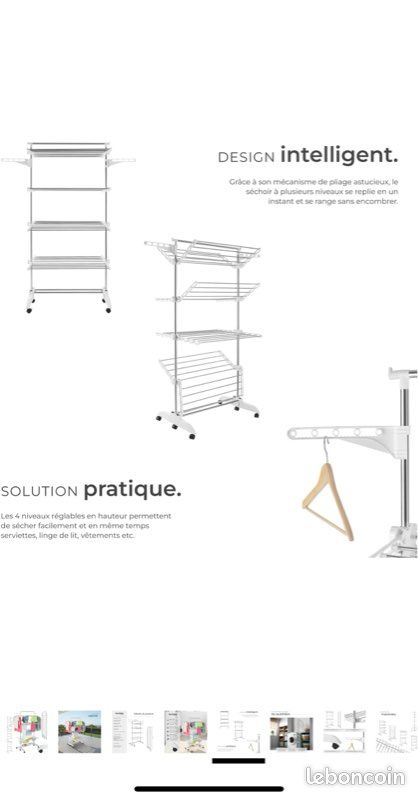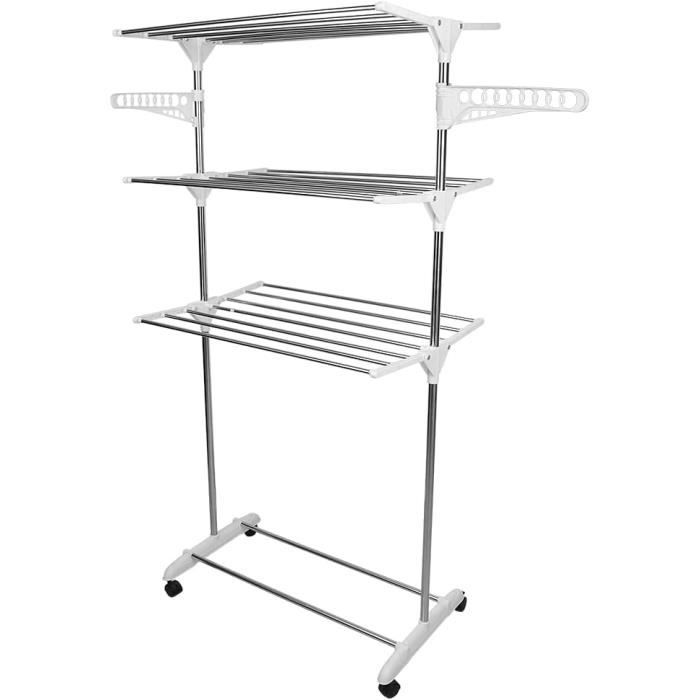 Description du produit: Apportez de l’ordre et de la flexibilité à votre intérieur avec l’étendoir Odelia de tectake. Matériaux : acier inoxydable, polypropylène, gomme Détails techniques: Dimensions totales (LxPxH) : env., 142 x 66 x 177 cm Deux ailes latérales dépliables complètent le tout, idéales pour suspendre les vêtements délicats comme les chemises ou les robes. Avec ses 36 barres et 64 pinces à linge, il offre une capacité maximale pour tous vos vêtements, même les plus grands draps! Contenu de la livraison: Étendoir, Instructions de montage Sechoir A Linge TecTake® Interieur XXL & Extérieur Séchoir à Etendoir Linge Berger Séchoir à Linge Extérieur Etendoir Linge Interieur Pliable Corde Capacité de charge totale : 16 kg, Poids : env., 4,5 kg Grâce à ses quatre niveaux réglables en hauteur en continu, il permet de sécher facilement de grandes quantités de linge sur plusieurs étages – parfait pour les serviettes, chemises, draps et bien plus encore. Vous pouvez ainsi faire sécher votre linge, des vêtements lourds, ou même utiliser le portant vêtement solide pour des articles plus volumineux. Etendoir à linge tour effet bois 4 niveaux Ailettes latérales (LxH) : env., 30,5 x 3,5 cm Aucune vis, rien de plus simple ! En plus, chaque barre est inclinable, ce qui vous permet de personnaliser l’agencement en fonction de la taille de vos vêtements. 64,99 € · Séchoir à Linge Etendoir à Linge Pliable Intérieur et Extérieur, Sèche Linge avec 4 Bras de Crochet, Hauteur Réglable 130-180cm. 36,99... Cet etendoir a linge solide se monte en un clin d'œil grâce à un système d’emboîtement intuitif. Idéal pour ceux qui cherchent un étendoir à linge sans prise de tête, prêt à l'emploi dès sa réception. Dimensions pliées (LxPxH) : env., 86 x 16 x 177 cm