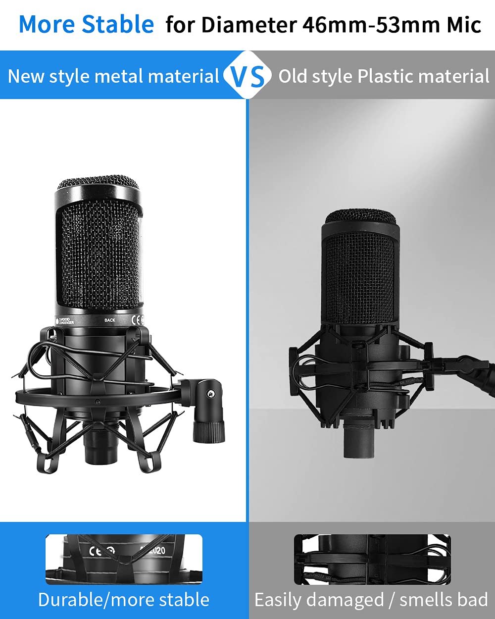 YOUSHARES : AT2020 Suspension Antichoc Professionnelle avec Accessoire Enregistrement Podcast Streaming Etour AT2020 Support Antichoc Pour Microphone Avec Filtre Réduction Vibrations Bras Micro Pied de micro C-Support de Microphone avec support antichoc pour Blue... Housse en mousse pour pare-brise AT2020 avec support anti-choc de Etour - Support fabriqué avec des matériaux de qualité pour éliminer les vibrations - La mousse acoustique sert de filtre anti-pop pour le microphone - Filtre les sons p et t les plus durs. Le support antichoc pour microphone est capable d'atténuer le bruit, les chocs et les vibrations transmis par des supports de microphone, des bras et des... Le support de microphone peut être facilement coudé via le bouton de réglage, retiré ou installé rapidement et s'adapte aux trépieds avec filetage 3/8-16 et 5/8-27., Idéal pour améliorer les vidéos YouTube, les podcasts, les jeux en ligne et autres enregistrements audio. Le support antichoc pour microphone est capable d'atténuer le bruit, les chocs et les vibrations transmis par des supports de microphone, des bras et des supports.