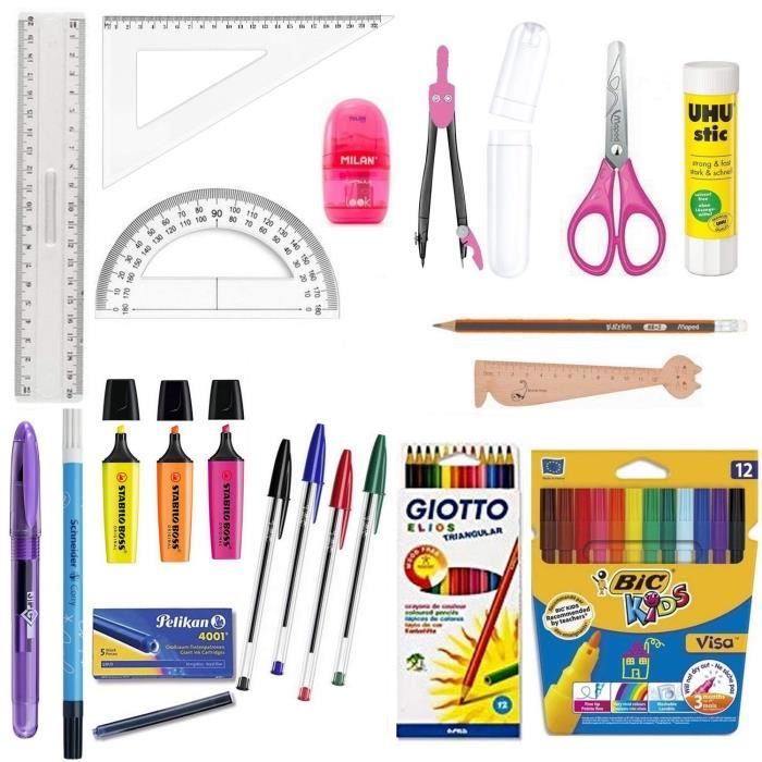 1 Bâton de colle de 8 grammes sans solvants, ne tâche pas., 1 Crayon Graphite Hb. Pointe biseautée extra douce, Débit d’encre régulier., Prise ergonomique. Couleurs très lumineuses , lavables sur la plupart des tissus 1 index adhésif Blumie Shop Avertissement De Sûreté Aucun Avertissement Applicable 1 Gomme blanche sans phtalates - 1 Taille-crayon 2 trous – plastique avec réservoir. Four Candies 39 PCS Fournitures Scolaires Avec étui à Crayons, 6 Porte Mines de 0,5 et 0,7 mm, 5 Stylos à Encre Gel Noire,12 Surligneurs Pastel Comprend 6 Tubes de Mines et 1 Taille-crayon 2 trous, plastique avec réservoir., 3 Surligneurs fluo. 1 paire de Ciseaux à bouts ronds lame 13 cm Lames graduées en acier inoxydable. Présentation par la ville du kit de fournitures scolaires offert aux familles – FCPE... 1 paire de Ciseaux à bouts ronds lame 13 cm Lames graduées en acier inoxydable Rouge ou Bleue (Couleur en fonction des stocks disponibles) 1 règle 20 cm graduée en mm, plastique transparent. 4 Stylos Bille medium: Bleu, Rouge, Vert, Noir. Pate A Fix Lot Agenda Scolaire L'Etudiant 2024-2025 12 X 18 Cm + Index Adhésif Set Papeterie Lot contenant 18 pièces : 1 règle 20 cm graduée en mm, plastique transparent JPC. - 1 Crayon Graphite forme triangulaire Hb Black Peps - 3 Surligneurs... Ardoise cadre Bleu ou Rouge en fonction des stocks disponibles.