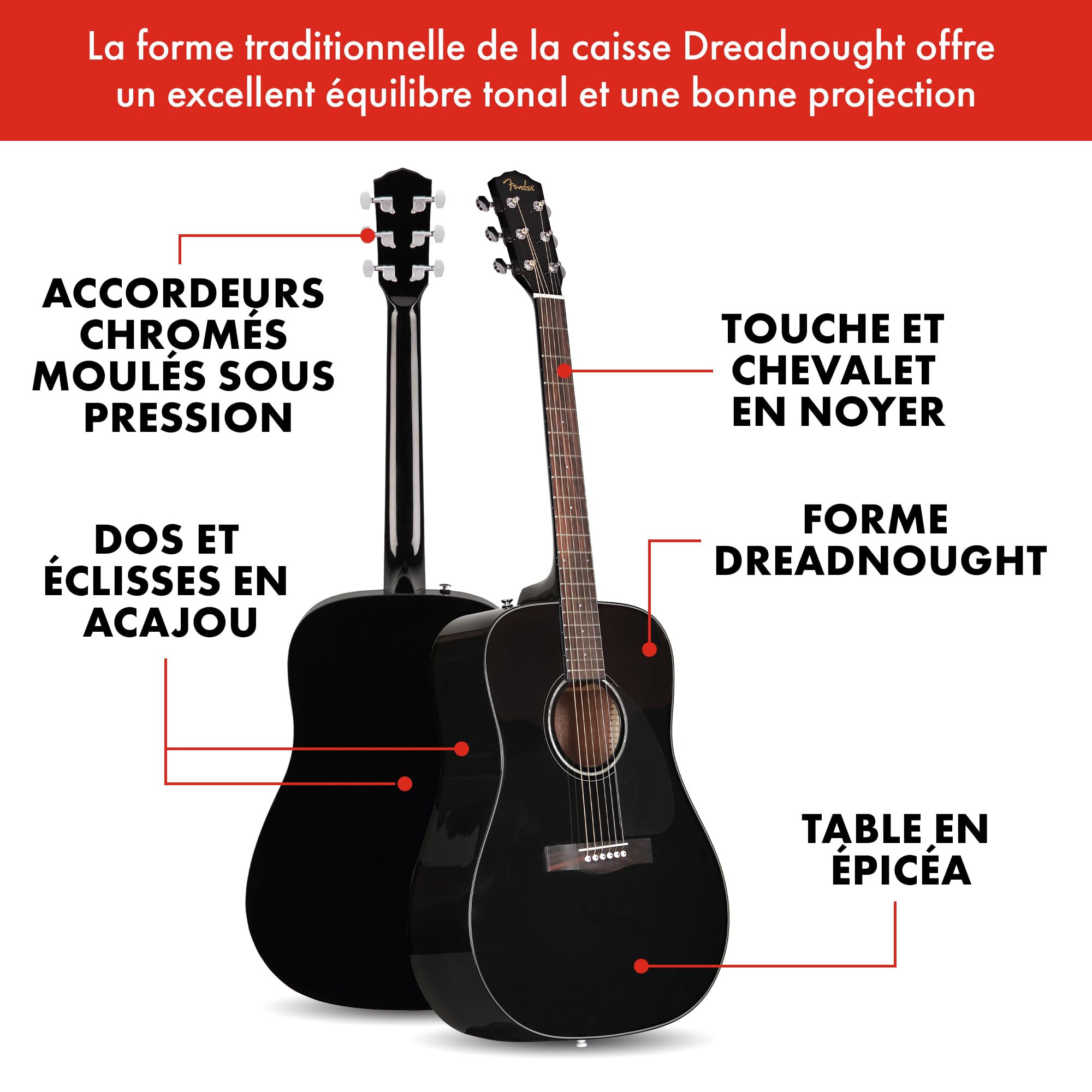 Test de la Fender CD-60SCE : acoustique électro, tout acajou Guitare Acoustique Forme C Manche Confortable Sigma SC-D - Etui Luxe Pour Guitare Acoustique Dreadnought | Reverb Guitare Folk Si vous êtes un (e) guitariste novice, il vous faut choisir un modèle dont le son et le toucher vous inspireront et vous donneront envie de continuer à jouer. La CD-60 est une guitare authentiquement Fender, à prix abordable et déclinée en trois super finitions pour aller avec votre style Conçu pour les joueurs de tous niveaux, le CD-60 offre une jouabilité exceptionnelle avec son profil de manche confortable en forme de « C » et sa touche en noyer lisse Que vous soyez guitariste débutant ou confirmé Takamine - Guitare Acoustique Dreadnought Electro Epicea/acajou Guitare... La forme du corps dreadnought du CD-60 offre un son audacieux et corsé avec une excellente projection et un excellent volume Dotée de mécaniques moulées sous pression pour une stabilité d'accordage fiable, cette guitare est conçue pour fonctionner, que vous jouiez des accords ou que vous jouiez des mélodies avec les doigts Découvrez des sons riches et résonants grâce à la construction du corps en acajou et à la touche en noyer du CD-60 La combinaison de matériaux de haute qualité et d'un savoir-faire expert garantit un son équilibré avec beaucoup de chaleur et de profondeur, parfait pour une variété de genres musicaux