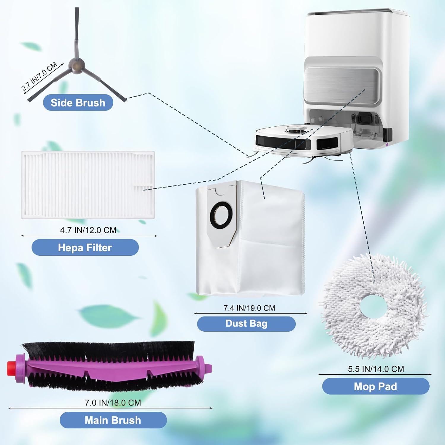 Accessoires De Rechange Pour Eureka J12 Ultra, Pour Midea V12 Aspirateur Robot Brosses A Rouleau 4 Chiffon 4 Sacs A Poussiere 4 Brosses Latera 97361798 Ensemble complet : Ce kit tout-en-un comprend 6 brosses latérales, 2 brosses principales, 3 filtres HEPA haute efficacité, 4 serpillières et 3 sacs à poussière. L'achat en un click pour la remplacement totale et le nettoyage plus propre Lot 18 Pièces Entretien Robot Filtres HEPA Midea V12 Kit Accessoires Eureka J12/Midea V12 - Brosses, Filtres HEPA, Sacs Poussière Sacs Poussière Robot Kit Rechange Brosses Et Lingettes Lot de 18 accessoires de rechange pour robot Eureka J12 Ultra Aspirateur et serpillère, compatible avec Midea V12, 1 brosse principale, 4 filtres HEPA, 4 brosses latérales, 4 lingettes, 4 sacs à poussière Nettoyage Puissant Sans Traces: Les lingettes microfibres hautement absorbantes avec une pression de 7N décollent la graisse et les taches tenaces. Nettoyage complet : le kit comprend une variété d'accessoires, tels qu'une brosse principale, des filtres, des chiffons de nettoyage, des brosses latérales, des... Nettoyage en Profondeur Sans Rayures: La brosse principale en caoutchouc pénètre profondément dans les tapis, éliminant saletés tenaces et poils. Laisse un éclat sans traces, même sur les carrelages Conseil : Remplacez l'ensemble complet tous les 3 mois pour une puissance d'aspiration maximale Facile à Nettoyer et à Remplacer: Toutes les pièces sont remplaçables en quelques secondes et réutilisables.