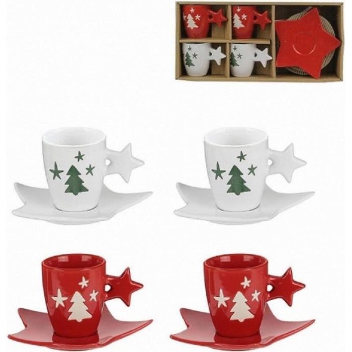 CHRISTMAS WONDERLAND Coffret Tasse à thé Porcelaine décor Noël 200 ml Vaisselle Festive Lamart Van Well Lot De 2 Tasses à Expresso Bali Avec Soucoupe, Décor Ligné, Porcelaine De Marque élégante Tasse Cafe Noel Cadeau de Noël-Tasse de Noël-pour préparer du lait, du café, de l'avoine, du thé parfumé... Découvrez le lot de 6 tasses à café avec soucoupes de Noël de la marque Noel by Lamart, un ajout élégant et festif à votre table ! Lot De 2 Tasses De Noël En Porcelaine Blanche U2013 Bonhommes De Neige Avec Chapeau U2013... Matière : Porcelaine Capacité : 80 ml., Diamètre : 11 cm., Couleur : blanc, or. Parfaites pour déguster un café chaud pendant les fêtes, ces tasses allient fonctionnalité et style, créant une atmosphère de joie et de convivialité.