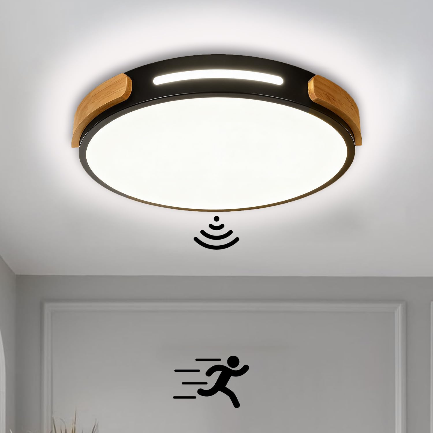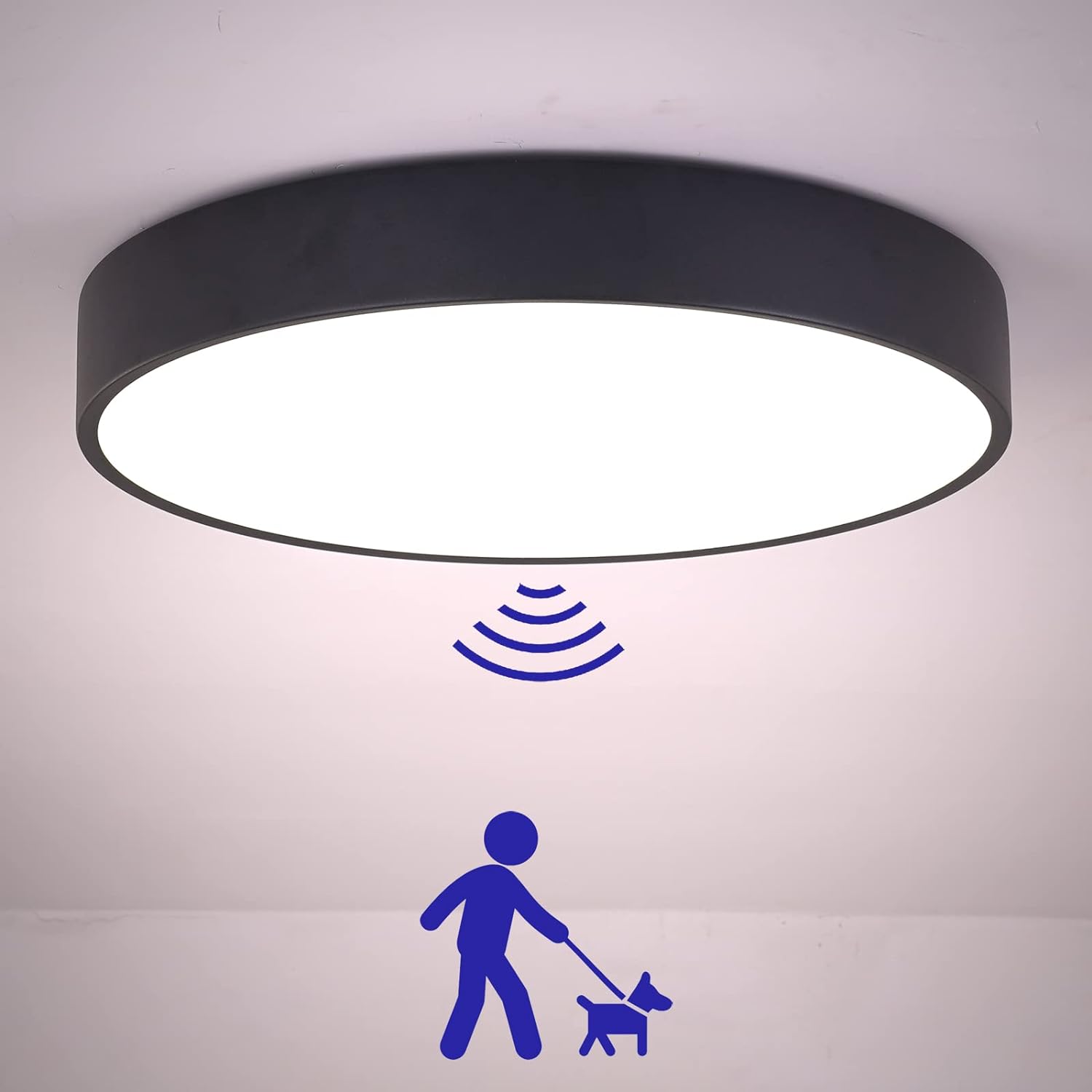 La lumière reste éteinte de jour, mais s'allume automatiquement la nuit, indépendamment de la détection de mouvement. LED Plafonnier, Rond 24W Lape de Plafond oderne, Noir Plafonnier Pour éviter tout problème de compatibilité, nous recommandons l'utilisation d'ampoules E27 à intensité variable afin d'éviter tout scintillement., ) Plafonnier 2 Ampoules E27 Lampe Detecteur De Mouvement Exterieur, Eclairage Led A Pile Plafonnier Detecteur Mouvement Exterieur La lumière s'éteint automatiquement la nuit lorsqu'aucun mouvement n'est détecté et s'allume lorsqu'un mouvement est détecté. Appuyez rapidement deux fois sur l'interrupteur (≤ 2 s) pour maintenir la lumière allumée pendant 5,5 heures, sans tenir compte des mouvements. Lampe d'extérieur avec détecteur de mouvement, verre, capteur... Idéal pour les propriétaires souhaitant un moyen rapide et pratique d'améliorer l'éclairage de leur véranda sans tracas. 60 W, non incluses), offrant une solution d'éclairage flexible pour toutes les occasions en extérieur. Il possède aussi un capteur de luminosité qui se déclenche lorsque la lumière naturelle n'est plus suffisante. Le Plafonnier LED E27 avec Détecteur de Mouvement Radar est recommandé dans les couloirs, halls et escaliers, les zones de passages dans les résidences et les bureaux ou commerces Esthétique industrielle raffinée : Conçu avec un cadre en métal noir mat durable et un abat-jour en verre transparent, ce plafonnier d'extérieur diffuse une lumière vive et accueillante tout en conservant un aspect discret. Détection de mouvement réglable : Optimisez les performances grâce à une portée variable (10-30 ft), une détection à 360° et une minuterie réglable (5 s à 3 min). (Remarque : les ampoules ne sont pas incluses. 4 modes d'éclairage Installation facile : Matériel de montage complet et instructions détaillées inclus pour une installation facile au plafond.