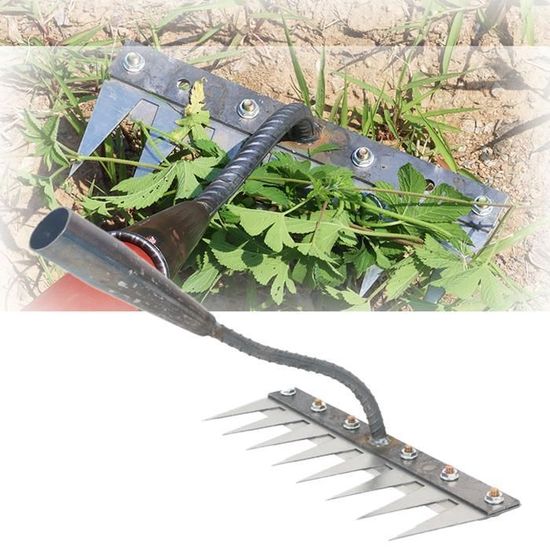 Pour Jardin Potager Desherbeur Manuel Extracteur De Mauvaises Herbes Longue Manche 100 Cm 680f4acaffcc215731effe55 Râteau Désherbeur Manuel Outil De Désherbage U2013 Outil De Désherbage à 4 Dents En Acier Au Manganèse | Outil De Désherbage Manuel à Poignée Manuelle Pour Le Jardinage, Les, Le Désherbage Outils de désherbage de jardinage : nos outils de désherbage manuels sont conçus pour arracher facilement les mauvaises herbes de votre pelouse, jardin ou... Caractéristiques : Dimensions : Longueur : 31 cm., 5 dents : 16,5 x 9,5 cm., 6 dents : 20 x 9,5 cm., 7 dents : 23,5 x 9,5 cm., 8 dents : 27 x 9,5 cm. Outils de désherbage de jardinage : nos outils de désherbage manuels sont conçus pour arracher facilement les mauvaises herbes de votre pelouse, jardin ou ferme, gardant votre espace extérieur bien rangé et sans mauvaises herbes Design efficace pour le jardinage : ce râteau en fer est un excellent outil de désherbage, ce râteau de jardin robuste perce facilement différents types de sols, parfait pour cultiver, tourner et ameublir le sol en préparation pour planter des fleurs et des légumes, et pour désherber Outils de désherbage de jardinage : nos outils de désherbage manuels sont conçus pour arracher facilement les mauvaises herbes de votre pelouse, jardin ou ferme, gardant votre espace extérieur bien rangé et sans mauvaises herbes. Matériau robuste : notre râteau de désherbage de jardin en acier au carbone à 5/6/7/8 dents est fabriqué en acier au carbone de qualité, assurant sa durabilité et sa solidité. Le râteau manuel en acier au carbone pour un déchaumage robuste peut résister à une utilisation intensive et ne se casse pas ou ne se plie pas facilement pendant les tâches de jardinage Large application : l'outil de désherbage manuel de jardinage peut facilement gérer les tâches de désherbage et de creusement dans le jardin, la cour ou la ferme, y compris le nivellement du sol, le désherbage domestique, le fossé, le labour, l'épandage de la terre végétale, le compost, le sable Idéal pour tailler et éliminer d'autres mauvaises herbes communes dans votre jardin, et également idéal pour ameublir le sol, facilitant ainsi la culture des fleurs et des légumes, rendant votre jardin encore plus beau