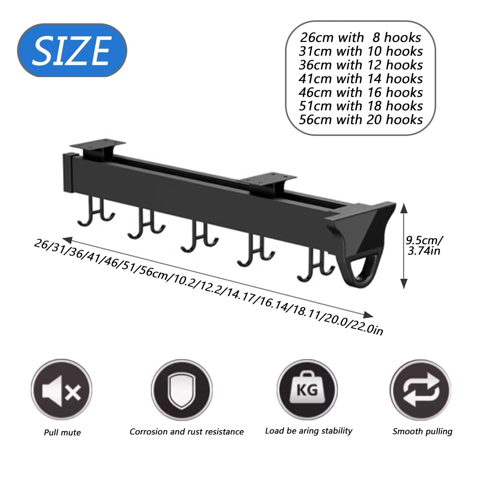 Organisateur de casseroles et poêles extractibles pour armoire, porte-ustensiles de cuisine coulissant avec crochet à double rangée, organisateur d'ustensiles de cuisine pour casserole à Support Mural Pour Balai - Organiseur Mural Pour Balai, Râteau Et... Organisateur Crochets Réglable 26-56 Cm Organisateur Crochets Support Balai Extractible - Organisateur Placard Aluminium, Crochets Réglables, 20 Crochets Organisateur Placard Crochets Réglables Rangement Balais Serpillères Outil Modèle : supports à linge extractibles / porte-balais extractible DétailsMatériau : aluminium + ABSCouleur : noirTaille : 26 cm/10,23 po - 8 crochets, 31 cm/12,20 po - 10 crochets, 36 cm/14,17 po - 12 crochets, 41 cm/16 crochets, 46 cm/18,11 po - 16 crochets, 51 cm/20,07 po - 18 crochets, 56 cm/22,04 po - 20 crochetsStyle : moderne et simpleNombreuses applications : l'organisateur de rangement pour balais est conçu pour contenir divers objets ménagers. 【Matériau solide】: Étagère de garage extensible en alliage d'aluminium et acier durable, elle fonctionne toujours de manière stable après des dizaines de milliers de tests de poussée et de traction, durable et longue durée de vie 26-56CM Support De Balai Et De Serpillère Extractible, Organisateur De Casseroles Et Poêles Extractibles, Support De Placard En Alliage D'aluminium Avec... Il est suffisamment grand pour accrocher vos balais, serpillères, étagères, chiffons, brosses, gants, battes de baseball, etc. 【Organisateur de rangement coulissant pour placard】: Les crochets de suspension pour organisateur de balais et de serpillères sont suspendus longitudinalement, peuvent utiliser efficacement l'espace étroit entre les abris à outils, vous permettant d'ajuster la distance entre les crochets de garage en fonction de différents outils, vos besoins pour maximiser l'utilisation de l'espace 【Organiseur d'outils Installation facile】: L'installation du cintre organisateur de rangement coulissant pour placard est très simple avec des instructions d'installation, qui conviennent à différentes surfaces d'installation, veuillez suivre les instructions claires étape par étape 【Larges applications】: L'organisateur de rangement pour balais est conçu pour contenir divers objets ménagers, il est assez grand pour accrocher vos balais, serpillères, étagères, chiffons, brosses, gants, battes de baseball, etc.