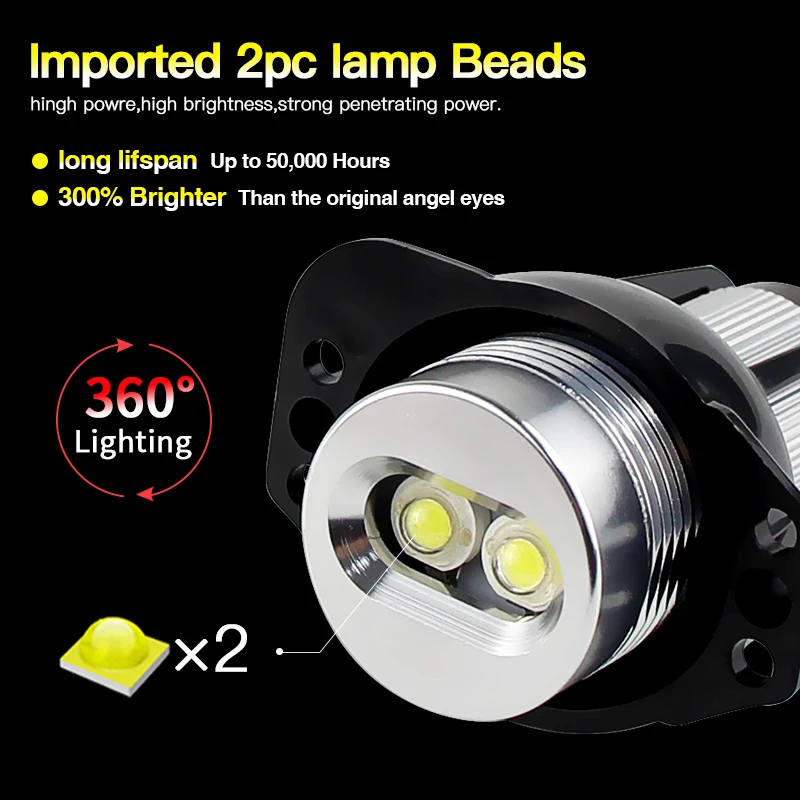 Compatibilité Étendue: Ces ampoules anneaux lumineux LED 12W sont conçues pour les modèles berline et touring produits entre 2005 et 2008 (pré-restylage). PHARES ANGEL EYES POUR BMW SERIE 3 E90 E91 2005-2008 Sans feu de vi... Le design plug-and-play permet une mise en place rapide en quelques minutes. Leur installation plug-and-play permet un montage rapide sans modification, idéal pour les conducteurs souhaitant améliorer l’esthétique et la sécurité. Anneaux Lumineux LED 12W 6000K 12W Angel Eyes Pour E90 E91, 6000K 900LM Angel Eyes Ampoules LED Pour éclairage Avant BMW Pré-facelift L’éclairage est net, homogène et améliore nettement la visibilité de jour comme de nuit pour un style moderne et un rendu professionnel. Description Ce kit comprend 2 ampoules LED SMD 12W, spécialement conçues pour les véhicules berline et touring produits entre 2005 et 2008 (pré-restylage avant). Éclairage Puissant et Uniforme:Grâce à des puces LED SMD hautes performances, ces modules génèrent un flux lumineux d’environ 900 lumens et une teinte blanche 6000K. Durabilité et Longue Vie: Conçues pour une utilisation quotidienne, ces ampoules LED affichent une durée de vie pouvant atteindre 30 000 heures. Leur structure résistante à la chaleur assure une stabilité optimale, même en conditions difficiles. Caractéristiques et spécificationsPuissance : 12WFlux lumineux : 900 lumensTempérature de couleur : 6000KTechnologie : LED SMD + système anti-erreur CANDurée de vie : jusqu’à 30 000 heuresFonctions et utilisationParfaites pour remplacer les anneaux lumineux d’origine, ces ampoules procurent un style plus moderne et un éclairage plus intense. Vérifiez toujours la compatibilité du modèle avant l’achat afin d’assurer une installation parfaite. Compatibilité Étendue: Ces ampoules anneaux lumineux LED 12W sont conçues pour les modèles berline et touring produits entre 2005 et 2008 (pré-restylage Leur flux lumineux de 900LM et leur couleur blanc froid 6000K offrent un rendu visuel éclatant, idéal pour améliorer l’apparence extérieure et la visibilité. Idéal pour les conducteurs recherchant fiabilité et réduction d’entretien. SET ANGEL EYES LED 20W BMW SERIE 3 E90 E91 (05-08) - AVEC XENON