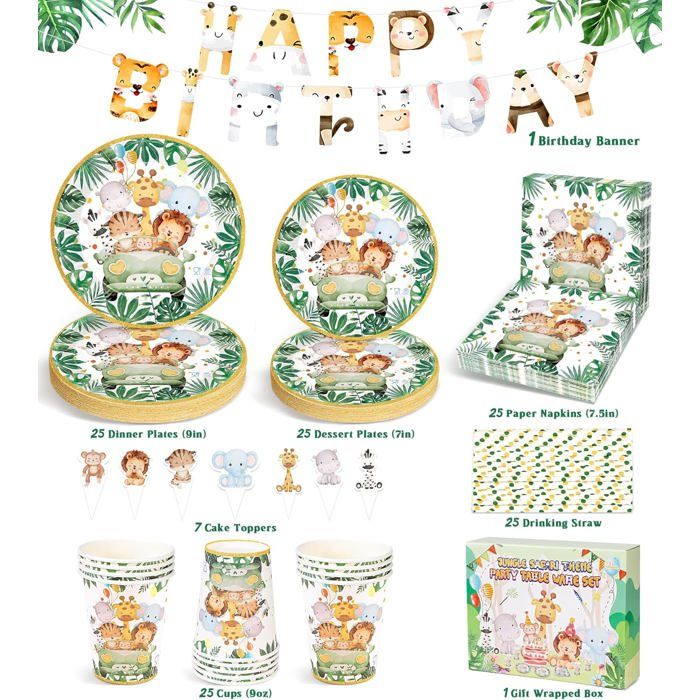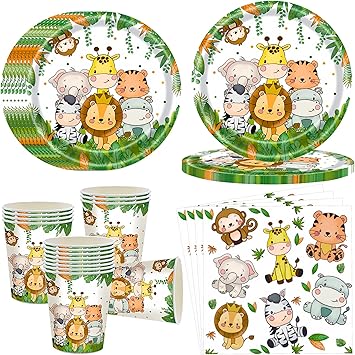 Grâce à son adorable motif animalier, c'est le choix idéal pour toutes les occasions. Thème Anniversaire Jungle Fête Enfant Biodégradable Set Vaisselle Jungle 40 Pièces - Assiettes Et Serviettes Anniversaire Enfant - Décoration Thème Animaux Décoration Table Safari Vaisselle Papier Thème Jungle Que ce soit pour une décoration d'anniversaire sur le thème des animaux de la forêt, une fête safari ou tout simplement pour une touche ludique sur la table, ce set attirera tous les regards ! Ensemble de vaisselle jetable avec animaux de la J... – Grandado Pas besoin de vaisselle ! Jetez-les simplement après la fête ! 150 PCS Jungle Safari Party Vaisselle,Assiettes Jetable Anniversaire pour 30 Invités,Assiettes... Ces matériaux de haute qualité garantissent une expérience utilisateur agréable. Idéal pour décorer un anniversaire de garçon ou de fille sur le thème des animaux de la forêt, il rendra chaque anniversaire inoubliable. Idéal pour les crèches, les fêtes d'école ou les pique-niques en plein air. Décoration Fête Jungle Vaisselle Jetable Jungle Heboland 125 Caractéristiques du produit Thème : Animaux de la jungle Convient pour : Anniversaire d'enfant, fête à thème, pique-nique, école, maternelle Matériau : Papier alimentaire écologique Contenu du set (pour 10 personnes) : 10 assiettes en carton (Ø environ 18 cm) 10 gobelets en carton 10 serviettes en papier (environ 16,5 × 16,5 cm, pliées) Utilisation : Vaisselle jetable, ne passe pas au lave-vaisselle Mots-clés : décorations d'anniversaire animaux de la forêt, assiettes en carton pour anniversaires d'enfants, décorations animaux de la forêt, vaisselle pour anniversaire d'enfant Adapté à de nombreuses occasions : Ce coffret d'assiettes en carton sur le thème des animaux de la jungle convient aussi bien aux anniversaires d'enfants qu'aux baby showers.