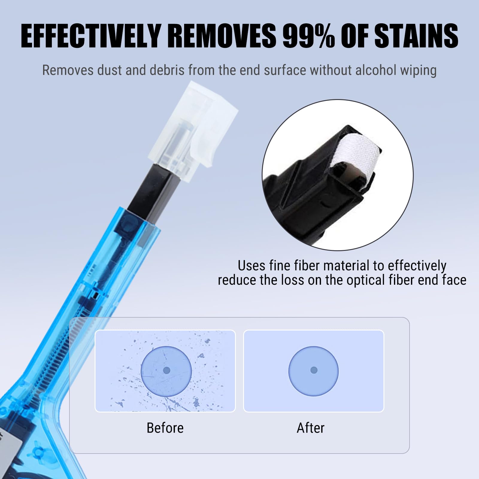 ★ Nettoyage efficace – Le Nettoyeur de Connecteur de Fibre Optique MPO et MTP est conçu pour nettoyer les extrémités exposées des cavaliers et les connecteurs des adaptateurs. POURQUOI NOUS CHOISIR? Nettoyant en un clic pour connecteurs MPO/MTP nettoyant efficacement les 12 fibres à la fois Chaque noyau de nettoyage peut être utilisé environ 600 fois. Nettoyeur Fibre Optique MPO COMPTYCO Fiber Tool Kit 12pcs One Click 1.25/2.5mm SC FC ST LC MPO Stylo De Nettoyage/Boîte Outil De Nettoyage Pour Fibre Optique | Nettoyeur De Fibres Optiques | Kit D'outils De Nettoyage Nettoyeur Rechargeable Fibre Optique Stylo de nettoyage de fibre optique Connecteur Optique Nettoie, Stylo... Nettoyez les connecteurs MPO multimodes et monomodes (coudés). Description du produit STYLO DE NETTOYAGE DE FIBRE OPTIQUE POUR CONNECTEURS MPO/MTP Le MPO Cleaner est un appareil haute performance conçu pour nettoyer les extrémités des viroles des connecteurs MPO et MTP. Caractéristiques: Matériau : Résine antistatique Taille : 21,50 cm Liste de colisage: Nettoyant x 1 ★ Facile à utiliser – Ce stylo nettoyant pour fibre tient dans la main, ce qui est très facile pour vous lors du nettoyage de la fibre de verre et un simple mouvement de pression engage le connecteur et lance le nettoyeur. Nettoyez les connecteurs MPO dans les adaptateurs. Outil économique pour nettoyer les extrémités des fibres sans utiliser d’alcool. Outil économique pour nettoyer les extrémités des fibres sans utiliser d'alcool. Élimine efficacement 99 % des taches La poussière et les débris sur la surface d'extrémité peuvent être enlevés sans essuyage à l'alcool. Les kits de nettoyage de fibres optiques de Fluke Networks proposent les meilleurs outils pour éliminer de manière efficace et aisée les contaminants les plus tenaces présents sur les réseaux fibre optique ★ Boîte de nettoyage de fibre optique en un clic – Le nettoyeur de fibre optique en un clic est un appareil haute performance pour nettoyer les faces d'extrémité des viroles des connecteurs MPO et MTP. ★ Nettoyeur de fibre optique multifonctionnel – Stylo de Nettoyage de Fibre Nettoyez les connecteurs MPO multimodes et monomodes (coudés). Il permet de gagner du temps en nettoyant efficacement les 12 fibres à la fois. Stylo de Nettoyage pour Fibre Optique, Nettoyant en Un Clic