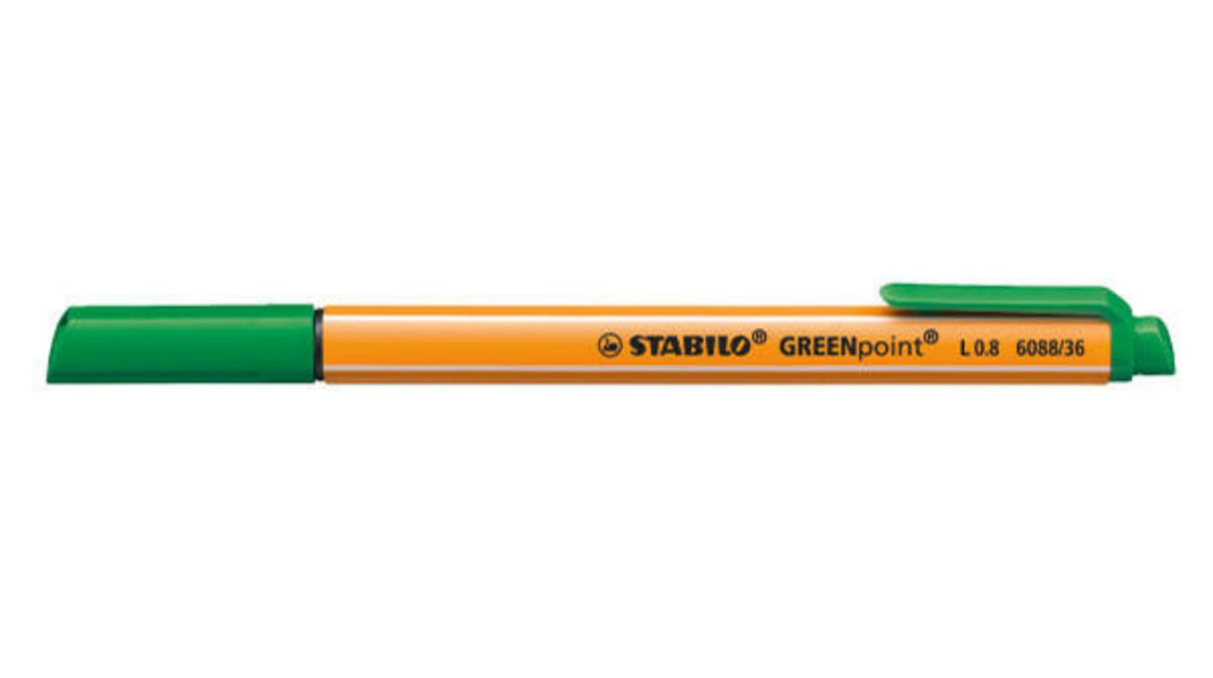 Stylo-feutre Stabilo GREENpoint pointe large 0,8 mm Pochette de 4... Avertissement De Sûreté Ne convient pas aux enfants de moins de 3 ans. Matériau du produit: Plastique , Couleur du produit: Feutre Robuste Clip Poche STYLO FEUTRE GREENPOINT PACK DE 4 - Stylos Feutre STABILO Feutre écriture Stabilo Point Nom de la marque: Stabilo . Feutre STABILO Greenpoint noir, stylo-feutre pointe moyenne 0,8 mm, fabriqué avec 96% de plastique biosourcé pour un choix éco-responsable. Écriture fluide et précise. -30 % sur votre 1ère commande avec le code BIENVENUE Description du produit Dimension du produit: 14., 5x1., 4x1 et couleur du produit: . Greenpoint Pointe 0.8mm Stylos Feutre STABILO GREENpoint - Pochette 6 Couleurs Pointe Moyenne 0,8 Mm éco-responsable Stylos Feutres éco-responsables