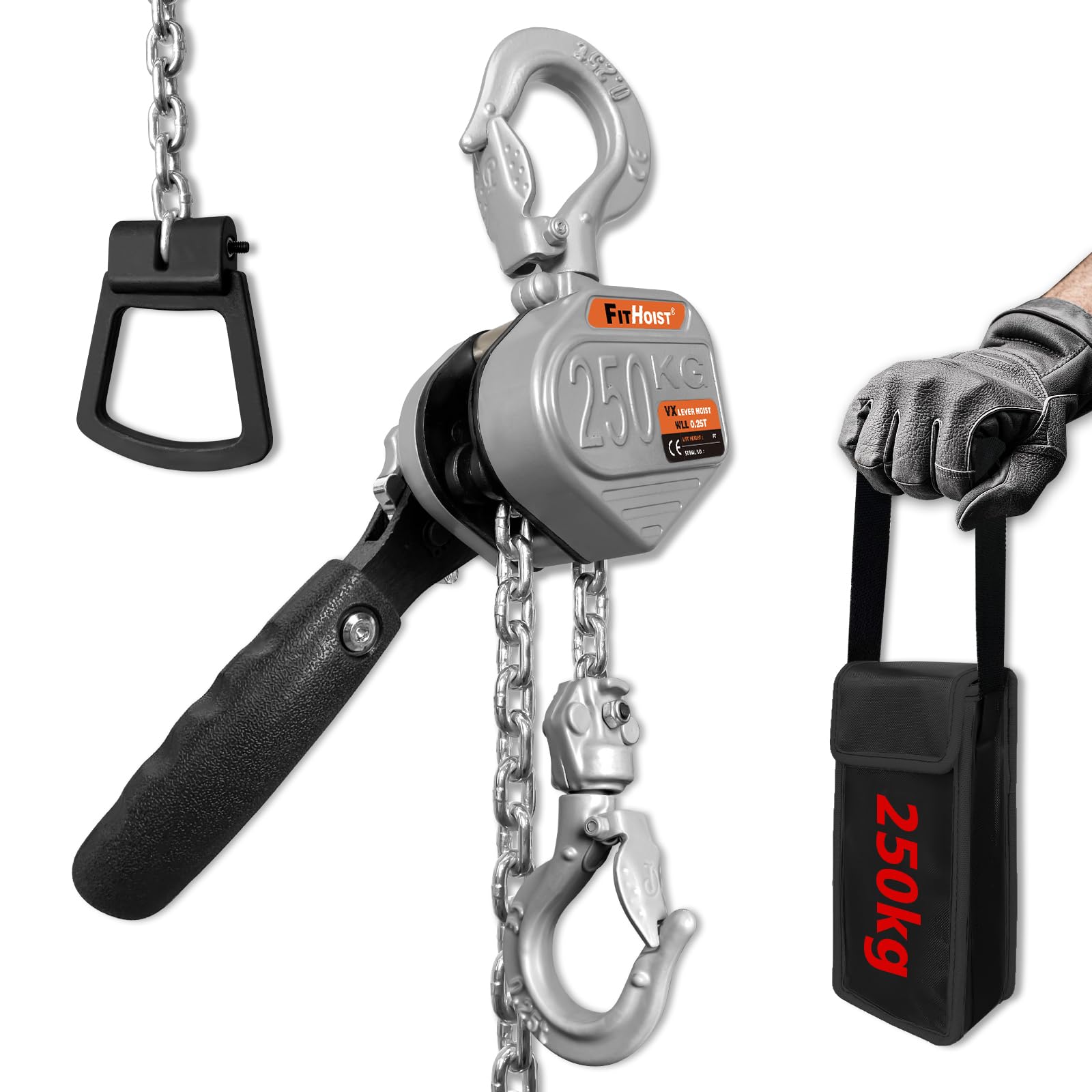 Chaîne Acier G80 Crochets FITHOIST Palan à Chaîne 1/4 Tonne 250kg - Mini Palan Levage 3m Alliage Palan A Chaine VEVOR Palan à Chaîne de Levage Manuel 1,5 T Palan à Chaîne Manutention Mini palan à chaîne de 1/4 tonne avec 2 sangles de levage et des gants de levage de 3 m - Petite chaîne G80 en alliage d'acier - 2 crochets robustes - Palan... Fonctionnement fluide : l'engrenage de réduction en une seule étape assure la performance de maintien de la charge. Le mécanisme de guidage de chaîne de charge permet un guidage fluide et silencieux de la chaîne. Prise en main confortable, faible force de la main, gain de temps et d'efforts. Design compact : petite taille avec palan à cliquet et design léger. Il est adapté pour le levage de petits équipements et articles. Un sac de rangement pratique est inclus pour un transport facile. N'hésitez pas à nous contacter si vous rencontrez des problèmes. Palan à chaîne de 1 Tonne série L-90 de Jet