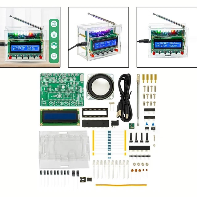 Pratique de soudure parfaite : le kit de radio FM est adapté à la fois à la pratique de la soudure et à l'apprentissage à domicile. Large plage de réception et bonne qualité sonore : la gamme de fréquences du kit radio FM peut être ajustée à 87-108 MHz, avec une large gamme de fréquences de réception, des signaux meilleurs et plus stables, et il a également les avantages de l'élimination du bruit et d'une forte capacité anti-interférences, vous offrant une expérience d'écoute parfaite Vous pouvez facilement basculer entre les deux modes d'alimentation selon vos besoins à tout moment et n'importe où. Avertissement De Sûreté Non Radio FM numérique avec lumière clignotante LED, kit électronique Le kit électronique a des effets de soudure réalistes et des paramètres réglables, adapté à différents scénarios de soudage, tels que l'enseignement et la fabrication de projets. Chaque composant peut servir de leçon pratique dans la conception et la fonction des circuits électroniques, ce qui rend les concepts complexes faciles à comprendre et fascinants. Pratique de soudure parfaite : le kit de radio FM est adapté à la fois à la pratique de la soudure et à l'apprentissage à domicile. Le kit électronique a des... Peu importe où vous êtes et s'il y a des obstacles autour de vous, ce système d'antenne de qualité professionnelle vous garantit de toujours profiter de l'audio le plus clair. Description du produit Description détaillée : Kit de soudage simple et amusant : kit électronique facile à installer et livré avec des instructions de soudage étape par étape, ce qui en fait le meilleur choix pour les débutants. 【Deux modes d'alimentation】Le kit d'entraînement de soudure radio FM prend en charge l'alimentation USB 5 V et 2 piles AA. Radio FM 87-108 MHz Kit De Radio FM Pour La Pratique De La Soudure - Projet Scolaire FM 87-108 MHz - Kits électroniques Pour Débutants En électronique Et Soudure (sans Boîtier Kit Avec Coque Acrylique Transparente KIT RADIO FM Bricolage Projet de Soudure RéCepteur Sans Fil RéGlable... L'antenne peut être ajustée à n'importe quel angle pour capturer facilement même les signaux FM faibles.