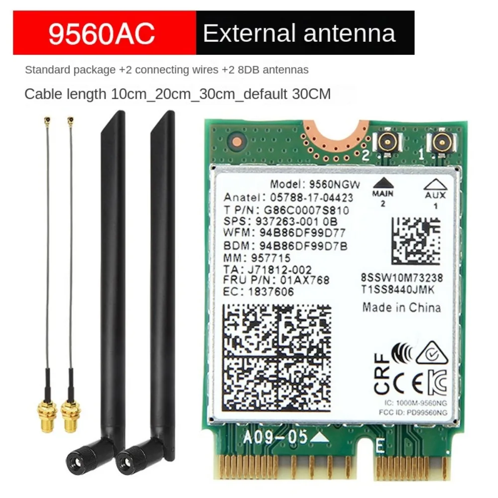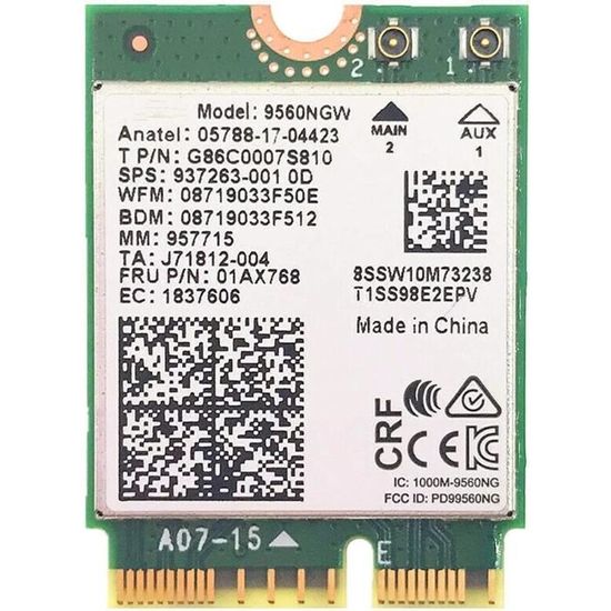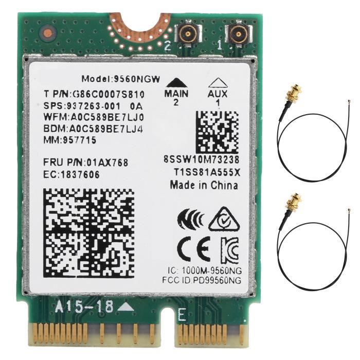 Carte réseau double bande Carte réseau sans fil Bluetooth5.0 802.11ac M La solution fournit le Bluetooth 5 et le Wi-Fi 2x2 802., 11ac, y compris les fonctionnalités Wave 2 telles que les canaux 160 MHz. Compatible Processeurs 8e Génération FOR Carte Réseau Bibande Sans Fil Bluetooth5.0 802.11Ac M.2 Avec Câble Carte Wifi Intel Ac 9560ngw L'erreur de mesure permis est de +/- 1-3 cm. Cikonielf carte sans fil Carte réseau sans fil double bande de bureau... Routeur 4G avec 2XAntenne 150Mbps Routeur WiFi 4G Portable Emplacement... 2 Key E standard, ne sont compatibles qu'avec un système conçu avec le CNVi. Combiné avec des processeurs Core et des sans exceptionnelles, l' Wireless-AC 9560 peut fournir une vitesse sans Gigabit4 et améliorer considérablement votre expérience connectée à , au travail ou en déplacement. Contactez le fabricant de votre système ou de votre carte mère pour vérifier la compatibilité. En raison de différents lots, l'apparence et la couleur du produit peuvent varier, mais cela n'affecte pas l'utilisationCouleur: VertMatériau : PCBContenu de l'emballage:1 * Carte Wi-Fi2 * AntenneSeul le paquet ci-dessus, les autres produits ne sont pas inclus. Remarque : Même si vous pouvez insérer ces CRF dans une prise M. 2 : CNVioTempérature de fonctionnement (bouclier adaptateur) : 0 à 80 (Celsius)Systèmes d'exploitation pris en charge : fonctionne uniquement avec 10Remarque : ne prend pas en charge 7/8/8., 1Compatible avec :Il peut être utilisé pour ////ISUS///Terransforce/Hasee etc.