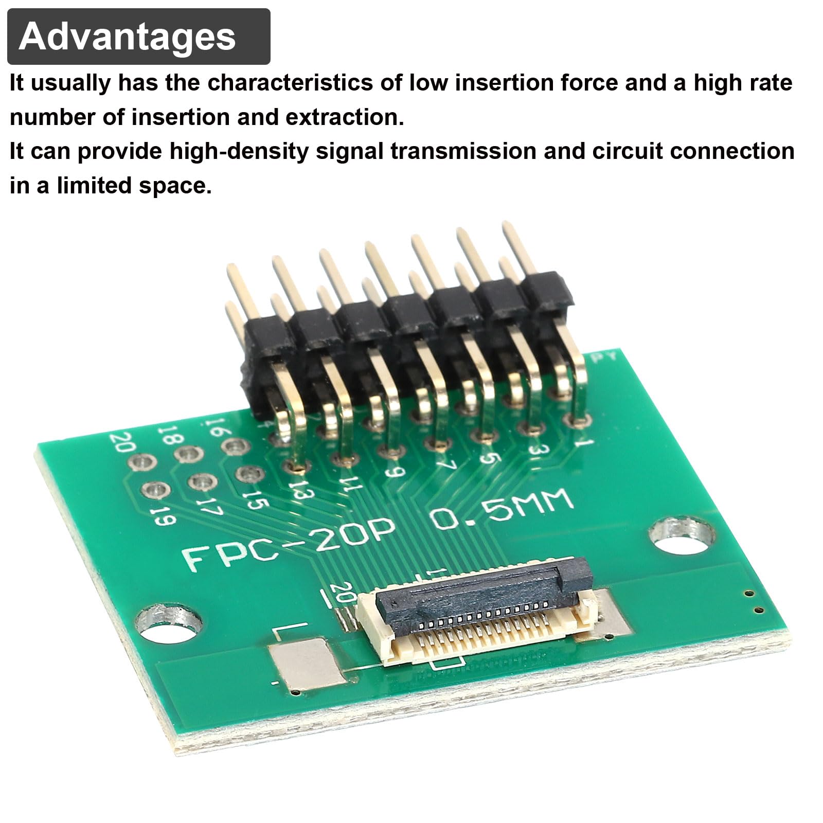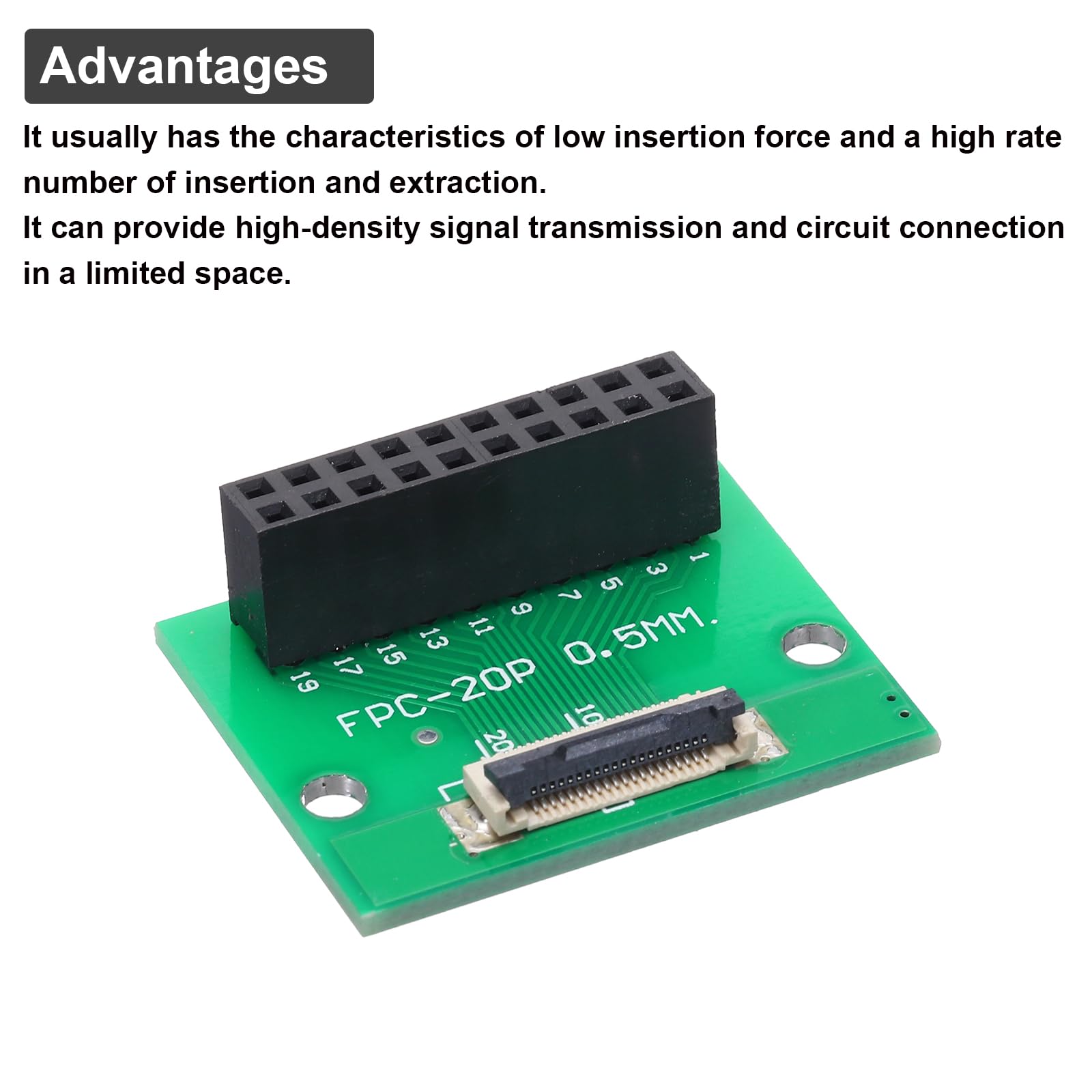 Adaptateur Pour écran LCD QUARKZMAN 4Pcs FFC FPC Carte De Connecteur 20 Broches 0.5mm Adaptateur Ffc Fpc 20 Broches Sparkfun Connecteur de caméra FPC - 24 broches, 0,5 mm (contact... QUARKZMAN Connecteur de carte FFC FPC 45 Pin 0.5mm Prise 2 Principalement utilisés dans divers produits de communication numérique, produits électroniques portables, électronique automobile, et autres domaines. Carte de connecteur FPC FFC - OMABETA - 26P à 34P - Câble d... Toutes les dimensions ci-dessus sont mesurées manuellement, veuillez autoriser une erreur de +/-0,1 pouce. Que vais-je obtenir?La carte FPC/FFC que nous fournissons ici est de taille :Type de carte : Double face avec prise de câble plat uniqueType de produit : Support de carte de circuit impriméNombre de broches : 20 brochesPas de côté de la prise FPC : 0,5 mmPas du côté arrière du FPC : 1,0 mmPas DIP : 2,54 mmTaille totale : 26 x 33 mm / 1,02 x 1,30 pouces (L*l)Dans le paquet de : 4 x Carte connecteur FPC/FFCQuels sont les avantages du produit?1., Il a généralement les caractéristiques d'une faible force d'insertion et d'un grand nombre d'insertions et d'extractions., 2., Il peut assurer une transmission de signal à haute densité et une connexion de circuit dans un espace limité., Comment l'utiliser?1., Soulevez l'interface noire ; 2., Insérez votre câble plat (non inclus ici) ; 3., Testez pour terminer. Les connecteurs FFC/FPC sont utilisés pour connecter des câbles flexibles ou des circuits imprimés flexibles dans des équipements électroniques, afin de fournir une connexion électrique fiable et une fixation mécanique, et sont adaptés aux applications nécessitant une grande flexibilité et un design compact. Qu'est-ce que c'est?Les connecteurs FFC/FPC sont utilisés pour connecter des câbles flexibles ou des circuits imprimés flexibles dans des équipements électroniques, pour assurer une connexion électrique fiable et une fixation mécanique, et sont adaptés aux applications nécessitant une grande flexibilité et un design compact.