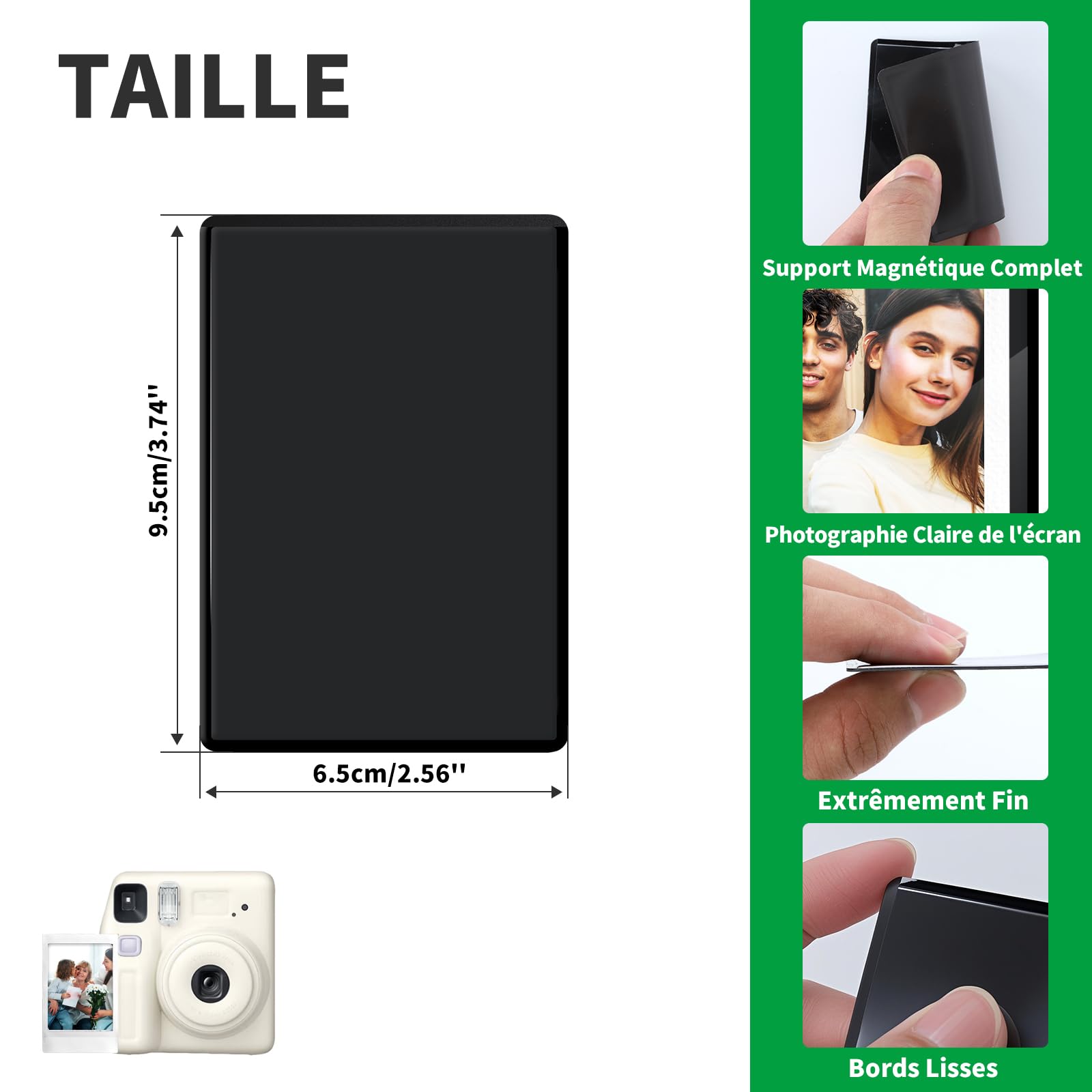 SPÉCIFICATIONS: Nom: Cadre photo magnétique Quantité: 15 pièces Matériau: PP Options de couleur: Noir Taille d'un cadre individuel: 65 x 95 mm (2,48 x 3,66 pouces) Compatibilité: Photos de 54 x 86 mm (ou 2,1 x 3,4 pouces) Modèles de papier photo compatibles : *Pour les films Polaroid Instax Mini *Pour Fujifilm Instax Mini LiPlay 12, 11, 9, 8, 99, 70, 50, 40, SE, EVO Cadres à broder magnétiques - Cadre magnétique BROTHER - Créatrices ✨【Multifonctionnel et Décoratif】 Ces cadres photo magnetique frigo puissants sont parfaits pour les réfrigérateurs, les armoires métalliques, les casiers scolaires ou d'autres surfaces magnétiques. Aimants Photos Frigo Personnalisables Aimant Frigo Polaroid FRETONBA 10 Cadres Photo Magnétiques Pour Frigo - Format Polaroid Instax Mini 9.5x6.5cm - Protection PVC Transparent Cadres Magnétiques Frigo Lot Cadres Frigo Aimants Puissants Placez la photo sélectionnée sur votre réfrigérateur et positionnez le cadre magnétique par-dessus. LE PAQUET CONTIENT: 15 * Cadres photo magnétiques (Les photos et appareils photo ne sont pas inclus!, ) 19,93 €. 15 Pièces Cadre Photo Magnetique igo,Mini Cadres À Photos Magnétiques igo 9,5 X 6,5... 🧲【Aimant Puissant】 La feuille magnétique puissante garantit que les pochettes adhèrent fermement à votre réfrigérateur ou à d'autres surfaces magnétiques sans tomber, même en cas de claquement de porte. Lorsque vous retirez le mini cadres à photos magnétiques frigo, il ne laisse ni résidu ni rayure. Ensemble Économique] Notre ensemble comprend 15 cadres photo magnétiques (9,5 x 6,5 cm). Chaque cadre photo magnetique est en PP, flexible et durable Si vous souhaitez remplacer la photo à l'intérieur du cadre, retirez simplement l'ancienne par l'ouverture et insérez la nouvelle, sans altérer la qualité de l'image. Les aimants photo sont très puissants et adhèrent bien à votre réfrigérateur ou à vos surfaces métalliques sans tomber facilement. Grâce à sa clarté optique, les couleurs ressortent brillamment - idéal pour une exposition durable et la protection de souvenirs précieux. Description du produit 15 Pièces Cadre Photo Magnetique Frigo PRODUIT DÉTAILS: Cadre photo magnétique pour frigo Avec leur fond noir élégant, ils sont parfaits pour présenter des photos, des images ou des impressions précieuses à la maison ou au bureau.