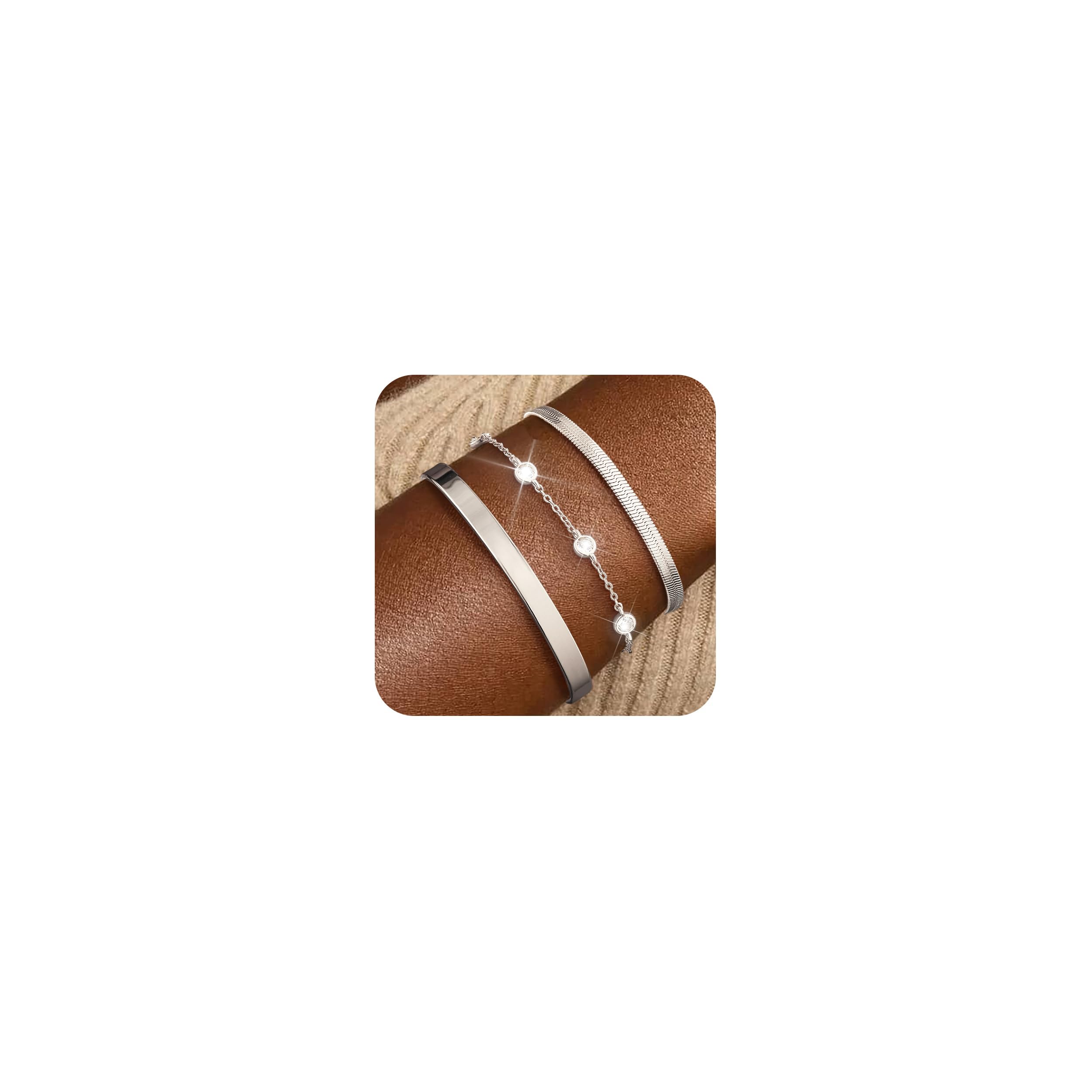 Peut être porté régulièrement. BRACELET AJUSTABLE FEMMES] La longueur des bracelet femme est de 15 cm 3 cm de chaîne d'extension réglable. Conception flexible et attentionnée, pratique à... Vous pouvez les empiler et les superposer avec d'autres bracelets pour un look tendance et cool. Solide et durable, ne contient pas de nickel, de plomb ou de cadmium, n'est pas facile à endommager ou à décolorer. Parure Bracelet Plaqué Or 18 Carats Cadeau Femme FUNEIA 5 Pièces Femme Bracelets Or Acier Inoxydable Plaqué Or Bracelet Délicat Fermoir Homard 【MCADEAU FEMME PARFAIT】: l'ensemble de bracelets en chaîne est un cadeau parfait pour les femmes. 【BRACELET ARGENT FEMME】Chaque commande comprend 3 bracelet femme: 2 bracelet jonc et 1 chaîne torsadée. Les bijoux en or pour femmes sont brillants, de couleur dorée et ne perdent pas facilement leur éclat. Et ces bracelets sont également d'excellents cadeaux pour les copines, les meilleures amies, les épouses, les adolescentes, les mamans, les grand-mères, etc. Nous nous efforcerons de répondre à vos préoccupations dans les 24 heures. Il se ferme à l'aide d'un fermoir en forme de homard, il est donc facile à mettre. respectueux de la peau sensible. Ensemble FLORA 3 pièces en Acier Inoxydable Garanti Collection Argent – Ilyes Bijoux Plongez dans l’univers raffiné de notre collection en argent, où élégance et éclat intemporel se rencontrent. Conçus pour sublimer chaque instant, nos bijoux en argent fin 925 allient finesse, durabilité et modernité. 💎 Brillance intemporelle : Des créations élégantes qui traversent le temps... Un ensemble de bracelets en argent minimaliste mais raffiné, disponible en 4 styles. Nous offrons un service clientèle haut de gamme. Bracelet Kenza plaqué or - Orné d'un pendentif à zircons – Instants Plaisirs | Bijoux