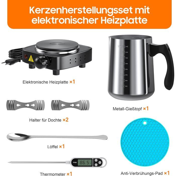 Vous pouvez régler et surveiller à tout moment la température exacte dont vous avez besoin pour une fonte parfaite de la cire Fondoir À Cire Numérique, Fondoir Électrique pour Bougies 100W, Température Réglable, Écran LED, Fabrication Rapide Et Facile de Bougies, Fusion de Cire, Kit de Bricolage pour la Maison Black Fondeur de Cire Polyvalent pour des Applications Créatives: Ce fondeur de cire électrique n'est pas seulement un appareil de chauffage. Machine à Fondre Cire électrique 1L Fondoir à Bougies Intelligent, Kit De Fabrication De Bougies DIY Appareil Multifonction Pour Retirer Cire Grande Capacite Avec Bol En Silicone 99018875 Mèche Pour Bougie Sa fonction de mémoire de température évite les réglages répétés, garantissant que la cire reste à la température idéale pour éviter la surchauffe, la combustion ou la fusion incomplète de la cire. Conception Pratique et Convivial: Avec sa poignée en silicone anti-brûlure, trou de ventilation sur le dessus et trous de refroidissement en bas, notre machine à fondre la cire assure une sécurité optimale lors de l'utilisation. HYQNG Fondoir De Cire électrique Pour La Fabrication De Bougies, 8/10/12/15/25 L, Récipient De Fusion De Cire De Bougie Avec Bec Verseur Rapide Et Contrôle De... En outre, il peut également être utilisé pour faire fondre du chocolat, du savon ou pour faire du rouge à lèvres. Kit Complet pour la Fabrication de Bougies: Obtenez tout ce dont vous avez besoin avec notre kit, incluant pot de fusion de cire de 1 L équipe de affichage LED et fonction de contrôle de la température, 100 mèches, 100 autocollants de mèches, 10 outils de centrage et une cuillère de mélange. Vous recevrez 1 fondeur de cire, 100 mèches, 100 autocollants pour mèches, 5 dispositifs de centrage, 1 thermomètre numérique et une cuillère à mélanger, un cadeau parfait pour les débutants et les amateurs de fabrication de bougies Adapté aux débutants et aux passionnés expérimentés, créant une atmosphère chaleureuse et unique dans votre maison Pot intérieur amovible avec déflecteur, pas de goutte lors du versement, rendant le processus de fabrication de bougies à la fois simple et agréable. Il couvre l'ensemble du processus de fabrication de bougies. Technologie précise de contrôle de la température: Ce fondeur de cire équipée d'un écran LED numérique, assure un contrôle précis de la température, atteignant jusqu'à 120°C. Il est idéal pour faire fondre différentes cires telles que la cire d'abeille, la cire de soja, la paraffine et la cire de coco.