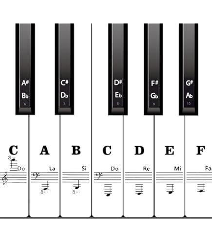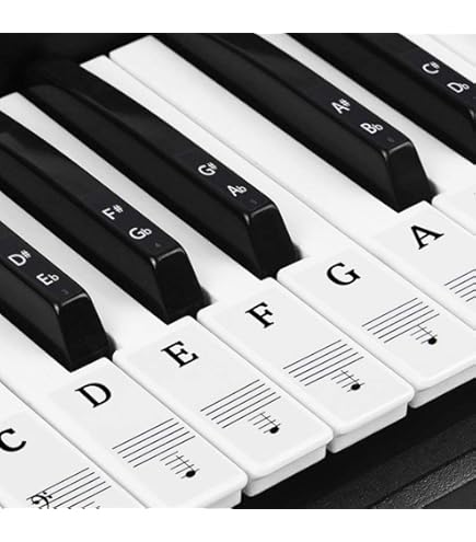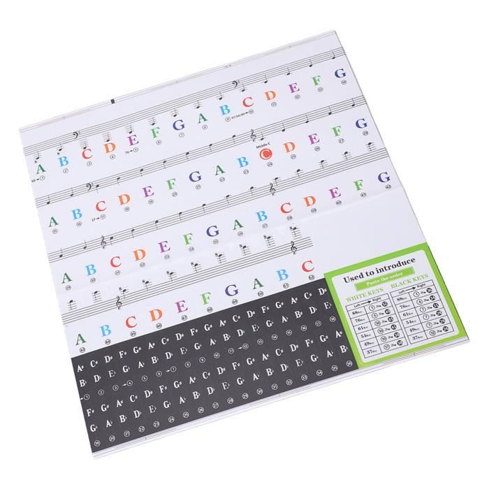 Autocollants pour clavier de piano, Autocollants pour notes de piano Polyvalence dans chaque note : avec 88 autocollants au total — 52 pour les touches blanches et 36 pour les touches noires — notre ensemble convient à une large gamme de pianos, pouvant accueillir 37/49/54/61/88 touches, assurant que chaque pianiste trouve leur ajustement parfait. Stickers Pour Clavier Piano Faburo 2pcs Autocollants Amovibles Pour Notes De Piano Stickers Autocollants Touches Piano Débutants Apprentissage Notes Conçus pour la perfection : fabriqués à partir de vinyle transparent de qualité supérieure, ces autocollants disposent d'un revêtement adhésif durable qui protège votre clavier sans un soupçon de dommage, garantissant une performance durable. Nos autocollants pour piano sont fabriqués en PVC de haute qualité et peuvent être réutilisés sans laisser de traces de colle. Ils endommageront pas le clavier de votre piano Autocollants Piano Pour Touches De Clavier 49 / 61/ 76 / 88... Design haut de gamme : fabriqués à partir de vinyle transparent, ces autocollants disposent d'un revêtement adhésif durable qui protège votre clavier sans causer de dommages. Rationalisez le message : simplifiez l'apprentissage des notes – Grands autocollants pour clavier de piano pour une visibilité claire des notes. Soutenez la communauté : nos autocollants de piano sont des outils pédagogiques inestimables pour les instructeurs de piano et sont des outils indispensables pour les enfants, les débutants et les autres qui se lancent dans leur voyage musical. Dites adieu aux résidus collants ou aux marques adhésives, préservant ainsi l'état impeccable de votre clavier. Les clés blanches mesurent 16 x 35 mm, tandis que les clés noires mesurent 7 x 25 mm Déverrouillez la maîtrise musicale en toute simplicité : nos grands autocollants pour clavier de piano révolutionnent l'apprentissage des notes, assurant une visibilité cristalline pendant la pratique.