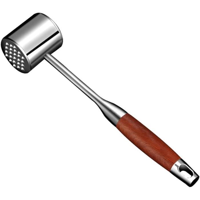 Marteau à Steak Poulet Marteau à Viande Antiadhésif Double Face *Matériau : acier inoxydable 304 palissandre., Couleur : argenté. Attendrisseur Inox 304 Double Face Attendrisseur Viande Double Face Aluminium Attendrisseur à Viande Marteau à Viande Acier Inoxydable Caractéristiques : * Nom du produit : attendrisseur de viande. Le côté lisse sert à écraser et aplatir la viande pour l'attendrir, et le côté texturé sert à percer et attendrir la viande. Il attendrit rapidement la viande... Conception double face, attendrissement précis]Cet marteau à viande en acier inoxydable 304 est équipé d'une conception double face, avec un côté texturé... Acier inoxydable résistant à la rouille : cet attendrisseur de viande est fabriqué en acier inoxydable 304 de qualité supérieure qui résiste à la rouille au fil du temps, durabilité pour une utilisation fréquente en cuisine. * Dimensions : 29 x 6 x 5 cm. Poignée ergonomique en bois de rose : conçue dans un souci de confort, la poignée en bois de rose poli offre une excellente prise en main tout en glissant pendant le fonctionnement. * Attendrissement efficace : les pointes surélevées fonctionnent efficacement pour décomposer les fibres de viande, améliorer l'absorption des saveurs et améliorer la mastication. Contenu de l'emballage : 1 attendrisseur de bœuf. * Design double face : combine 24 pointes surélevées pour attendrir la viande rapidement et un côté plat pour étendre les cubes de viande pour obtenir une texture plus douce.