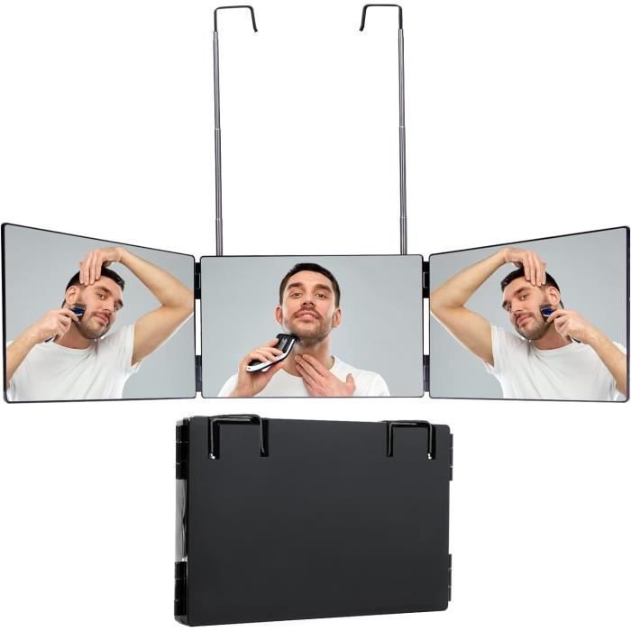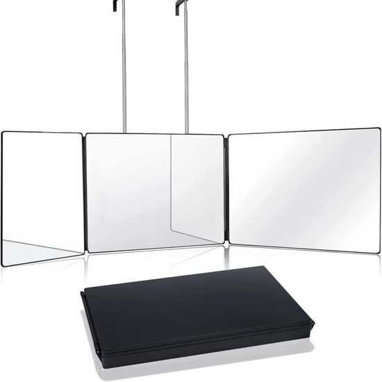 Lorsqu'il n'est pas utilisé, il peut être facilement plié et rangé, ce qui permet de gagner de la place., 3., Cadeau idéal : le miroir est livré dans une boîte colorée et peut être offert comme cadeau d'anniversaire, cadeau de mariage, cadeau de Thanksgiving ou cadeau de Noël à votre famille, votre femme, votre mari ou vos amis. Miroir 3 Faces Miroir 360° Led Raser Maquiller Angle Mort Pliable Crochet Blanc Il est extrêmement pratique à utiliser. Miroir Réglable Pliable LaBlanc Miroir 360° Coiffure, Miroir 3 Faces Barbier, Miroir Suspendu Portable&Hauteur Réglable Miroir Barbier Maison Il peut être accroché à une porte, un mur, une armoire ou dans une salle de bain, ou posé directement sur une table pour être utilisé., 2., Miroir pliable : le miroir est pliable et portable. Remarque : la surface du miroir est recouverte d'un film protecteur, veuillez le retirer avant utilisation ; le miroir ne comprend pas de lumière LED Ce miroir 3 faces pivote à 180° pour une vue 360° de ta tête. Avec une loupe 10x pour les détails et une lumière LED froide (rechargeable USB) pour un éclairage... Le miroir est emballé dans une boîte colorée et peut être utilisé comme cadeau d'anniversaire, cadeau de mariage, cadeau de Thanksgiving ou cadeau de Noël pour la famille, les épouses, les maris et les amis. Gagnez du temps et de l'argent : se faire couper les cheveux chez un coiffeur prend du temps et coûte cher. Miroir 3 Faces Coiffure Homme - A250 - Portable avec Crochets et Miroir... Il vous aide pour les coupes de cheveux, le rasage, la coloration, le bouclage, le maquillage, le tressage, et plus encore Miroir de rasage : notre miroir est fabriqué en verre véritable, vous offrant un reflet clair et fidèle à tout moment. Réglable et pliable : le miroir de coiffure est livré avec un crochet réglable, avec une plage de hauteur de 0 à 53 cm (0 à 21 pouces), ce qui permet de régler la hauteur. Contenu de l'emballage: 1 x Miroir 360 Degrés 1 x Miroir grossissant 10x 2 x Ventouses en silicone Caractéristiques : 1., Miroir réglable : le miroir de coiffure est équipé d'un crochet réglable, avec une plage de hauteur de 0 à 53 cm (0 à 21 pouces). Le miroir est pliable et portable, ce qui vous permet de le plier et de le ranger facilement lorsqu'il n'est pas utilisé, pour gagner de la place