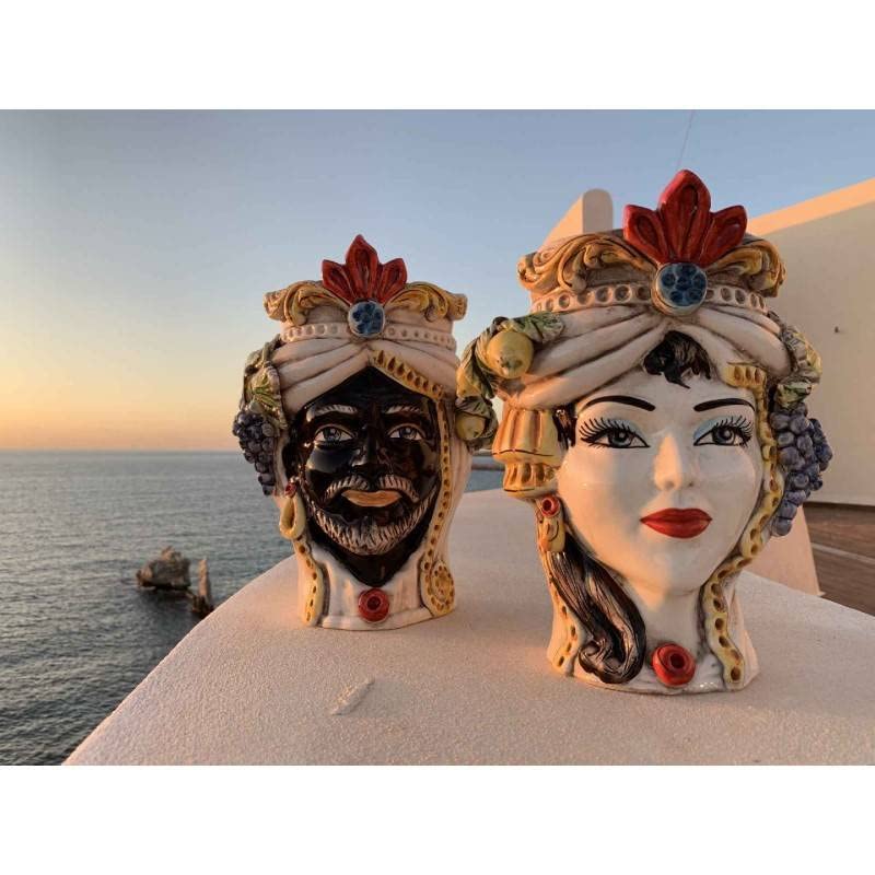 Céramique Sicilienne de Caltagirone "Tête de brun" Man Verus à pointe Blessée par son orgueil et trahie par ce qu'elle croyait être son grand amour, la jeune fille projeta sa vengeance. Objet Déco Tradition Sicile Tête De Janus Biface à Deux Faces En Céramique De Caltagirone, Décor Homme Noir Et Vert XVIIème Siècle - H Environ 13 Cm. Mod RP - Canada Tête Double Face Mythologie Romaine Pourtant le jeune homme, qui n'avait eu aucun scrupule à s'abandonner aux plus douces profusions amoureuses, cachait dans son cœur un lourd secret : sa femme et ses enfants l'attendaient en effet en Orient, dans ce pays vers lequel il devait désormais se rendre., retour. Signature à chaud Caltagirone et certificat de garantie. Il meublera avec goût et élégance un coin de votre maison ou de votre jardin ou même de votre magasin, avec éventuellement une plante ou des fleurs à l'intérieur Vendeur: sicilia_bedda_capaci ️ (377)100%, Lieu où se trouve:Capaci, IT, Lieu de livraison: FR et de nombreux autres pays, Numéro de l'objet:406577513230Janus Double Face Tête Avec Deux Visages en Céramique Caltagirone H 21 CM Ca. De. Il a décidé que le visage de ce jeune homme, pour elle, encore cher, aurait dû rester à ses côtés pour toujours, et a créé avec sa tête un objet... toujours associé au sacré. Ainsi, pendant la nuit, alors que son Moro dormait sans défense, elle le tua et lui coupa la tête afin que son bien-aimé non seulement ne puisse plus retourner dans cette famille, mais qu'il reste avec elle pour toujours. Les voisins, imprégnés Du haut de son balcon fleuri, elle fut un jour remarquée par un jeune homme, un Maure. Elle a décidé que le visage de ce jeune homme qui lui était cher devait rester à ses côtés pour toujours, et avec sa tête, elle a créé un objet semblable à un vase dans lequel elle a placé une pousse de basilic, une plante liée à une symbolique divine et divine. Produit 100% artisanal Fabriqué en SicileTête de Janus biface à deux faces en céramique de CaltagironeModèle à décor de couronne de fleurs et de fruits, hauteur 13 cmSignature incendie et certificat de garantieLA LÉGENDE DES TÊTES DE MAURESSelon la légende, vers l'an 1000, au plus fort de la domination des Maures en Sicile, dans le quartier arabe de Palerme Al Hàlisah (qui signifie le pur ou l'élu) aujourd'hui appelé Kalsa, vivait une belle jeune fille jours dans un calme doux et solitaire, en consacrant son attention aux soins affectueux des plantes de son balcon.