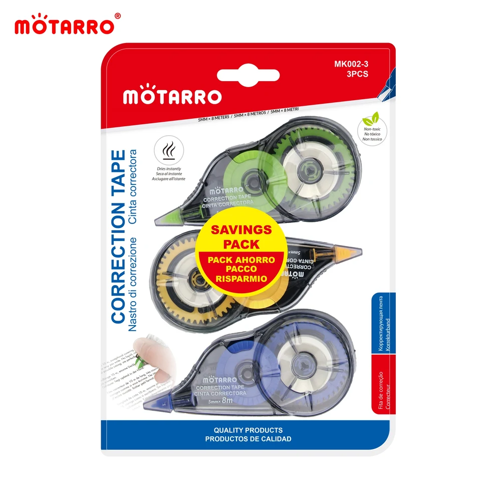 Améliorez votre expérience de correction avec la bande de correction EooUooIP. Des corrections sans effort : Dites adieu au liquide correcteur salissant et bonjour à notre ruban correcteur pratique et précis. Utilisation polyvalente dans divers contextes : Que ce soit à l'école, au bureau ou à la maison, notre ruban correcteur convient à tous. Sa taille compacte permet un rangement et une portabilité faciles, ce qui en fait un outil indispensable pour les corrections en déplacement. Greenlans Ruban correcteur pratique blanc de 30 m de long, autocollant, pour étudier, accessoire de papeterie Jeu de 8 couleurs vibrantes : Notre ruban correcteur EooUooIP se présente sous la forme d'un lot de 8 couleurs magnifiques et attrayantes. Notre ruban correcteur offre un ensemble vibrant de 8 couleurs, ajoutant une touche de créativité à vos tâches quotidiennes. Ruban correcteur en résine - SONEW - Grande capacité - 6 pièces... Son format compact permet de le ranger et de le transporter facilement, ce qui en fait un outil essentiel pour les corrections en déplacement. Présentation du ruban correcteur EooUooIP – l'outil ultime pour des corrections précises et sans effort. Avec une simple application, vous pouvez facilement masquer toutes les erreurs, laissant derrière vous une finition propre et professionnelle. Ruban Correcteur Blanc Applicateur Facile Ruban Correcteur Blanc Et Applicateur Facile à Utiliser Fournitures D'étude Pour Les Corrections Correcteur Sans Liquide Les rubans (également appelés rollers) correcteurs permettent une correction à sec et une réécriture immédiate. Il existe des rubans à correction frontale et d'autres à correction latérale, ainsi que des rollers au format mini, faciles à glisser dans une trousse ou une sacoche Conception conviviale : Notre ruban correcteur présente un design ergonomique qui permet une prise en main confortable et un contrôle sans effort.