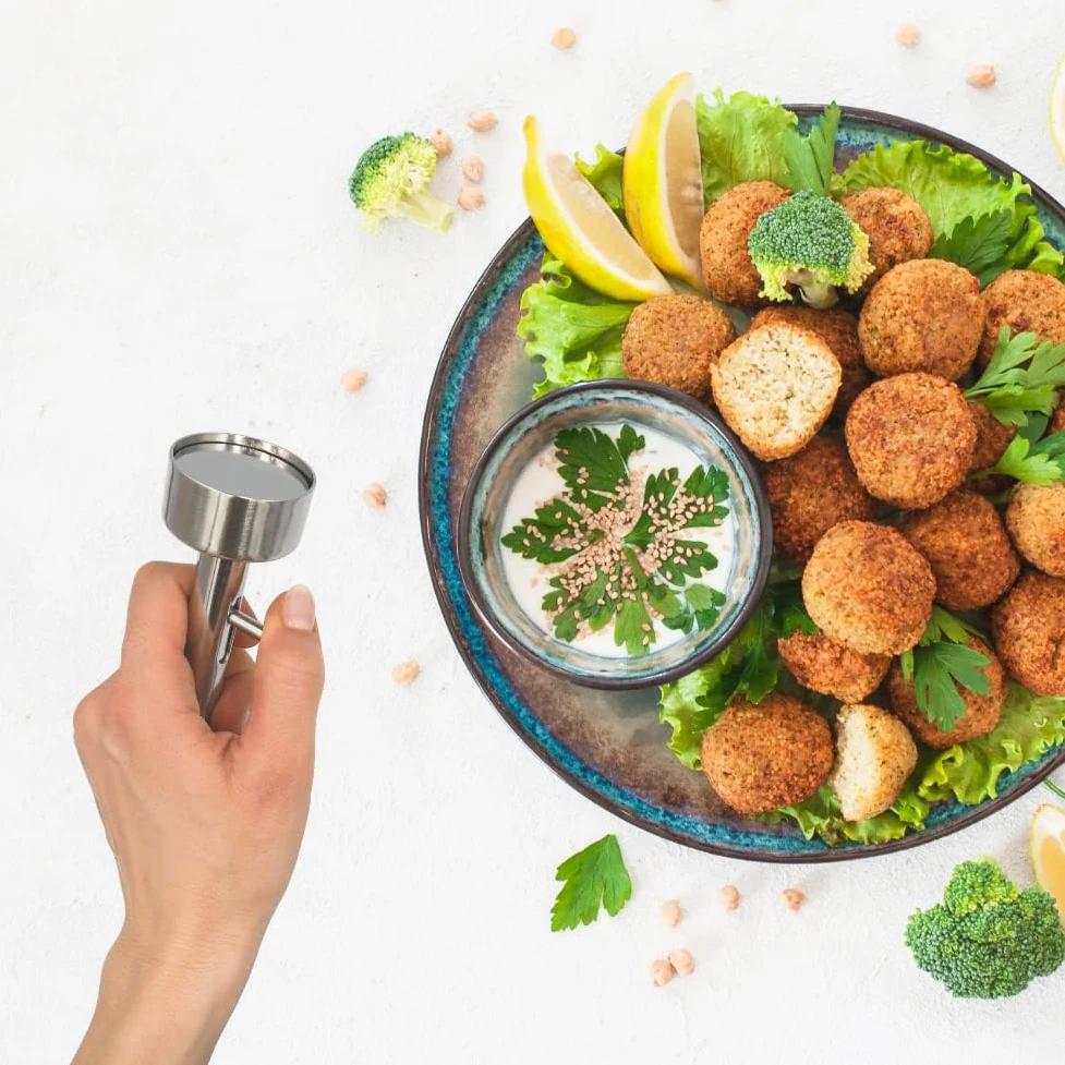 Utilisation polyvalente : avec la cuillère à falafel, vous pouvez non seulement préparer de délicieux mélanges de falafel, mais aussi des boulettes de viande. Cuillère à Falafel Falafel Portioner, Falafel Pelle, 4cm Boules De Viande Ustensile Cuisine Falafel Maison Cet ustensile de cuisine pratique peut également être utilisé comme cuillère à boulettes de viande. FRA-Pelle à boules de crème glacée Cuillère À Crème Glacée En Acier... En raison de la mesure manuelle, il peut y avoir une erreur de 1 à 2 mm, ce qui est un phénomène normal. Contenu : 1 x emporte-pièce., 1 cuillère à falafel Utilisation polyvalente : avec la cuillère à falafel, vous pouvez non seulement préparer de délicieux mélanges de falafel, mais aussi des boulettes de viande. Pelle à falafel professionnelle en acier inoxydable... ● Poids du produit : 115 g. Description du produit : ● Couleur : argenté. La cuillère à falafel est fabriquée en acier inoxydable, pas facile à endommager et durable, c'est un bon assistant dans la cuisine. Boules de falafel savoureuses dans un bol isolé sur fond transparent ● Dimensions du produit : 13,6 x 4,2 cm. Préparation : tirez le levier avec votre pouce, cuillère un peu de falafel et formez correctement pour créer facilement des galettes de 4 cm.