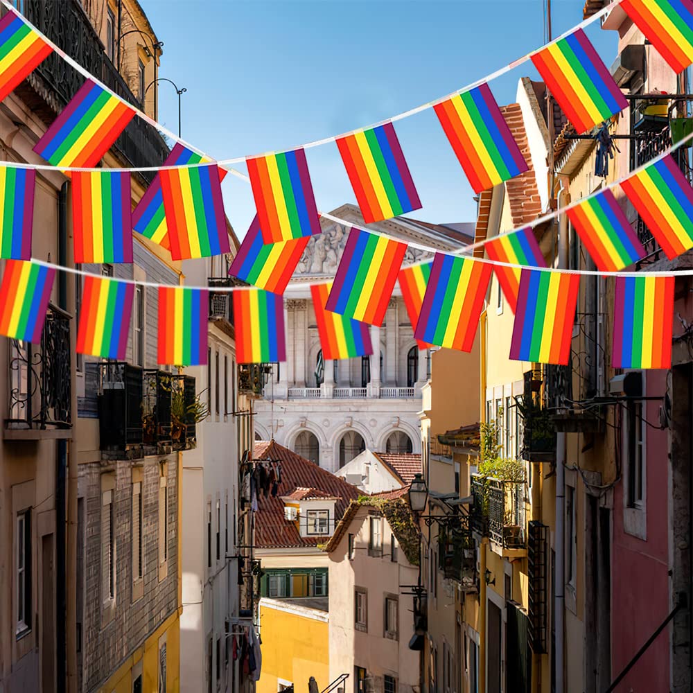 Décoration Fête Festival Colorée Guirlande De Fanions Holographiques Anniversaire Guirlande Arc-en-ciel Pride SHATCHI Guirlande de fanions Union Jack de 20 m de long avec 50 Guirlande Catalane en Plastique - 10 m (20 drapeaux 20 X 30) | Accessoires et supporters... Chaque fanion affiche les rayures arc-en-ciel emblématiques en rouge vif, orange, jaune, vert, bleu et violet, créant un affichage visuel frappant qui est parfait pour les événements de fierté, les festivals, les fêtes et les célébrations. Les drapeaux triangulaires sont solidement fixés à une bande de connexion solide, ce qui les rend faciles à accrocher dans les pièces, les espaces extérieurs ou entre les bâtiments. Simple à installer et à démonter, cette guirlande peut être rangée proprement pour une utilisation future. Ajoutez une touche de couleur vive à votre fête avec cette superbe guirlande arc-en-ciel. Dimensions : guirlande de 10 mètres de long avec 20 fanions triangulaires vibrants avec motif à rayures arc-en-ciel, parfait pour les décorations intérieures et extérieures Design : chaque fanion triangulaire présente des rayures horizontales attrayantes en violet, bleu, vert, jaune, orange et rouge Utilisation polyvalente : convient pour les festivals, les célébrations, les défilés, les fêtes et les événements communautaires, ajoutant une touche de couleur à n'importe quel lieu La guirlande fanions pour un événement annuel : gay pride, octobre rose... Plusieurs mètres de guirlandes de couleur unie ou multicolore. Ce type de guirlande fanion est assez flashy et permet d'égayer rapidement une rue, un bar ou une cave à vin, un magasin