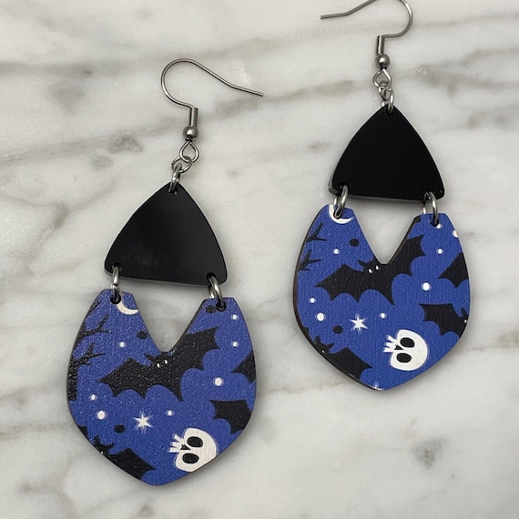 Halloween Conception Chauve souris Noire Boucles D'oreilles - Temu... Boucles d'oreilles pendantes en acrylique pour Halloween : fabriquées en matériau acrylique de haute qualité, pas de décoloration, pas de nickel, pas de plomb. Le pendentif est résistant aux rayures, robuste et durable. Nos boucles d'oreilles d'Halloween sont plus robustes que les décorations normales, et la surface de notre pendentif est lisse sans rayures Trio Pour Halloween Fantôme, Chauve Souris Et Tête De Mort Brrrr ! - Un Boucles d'oreilles chauve-souris déguisements d'halloween idées cadeau – Résin'éclat