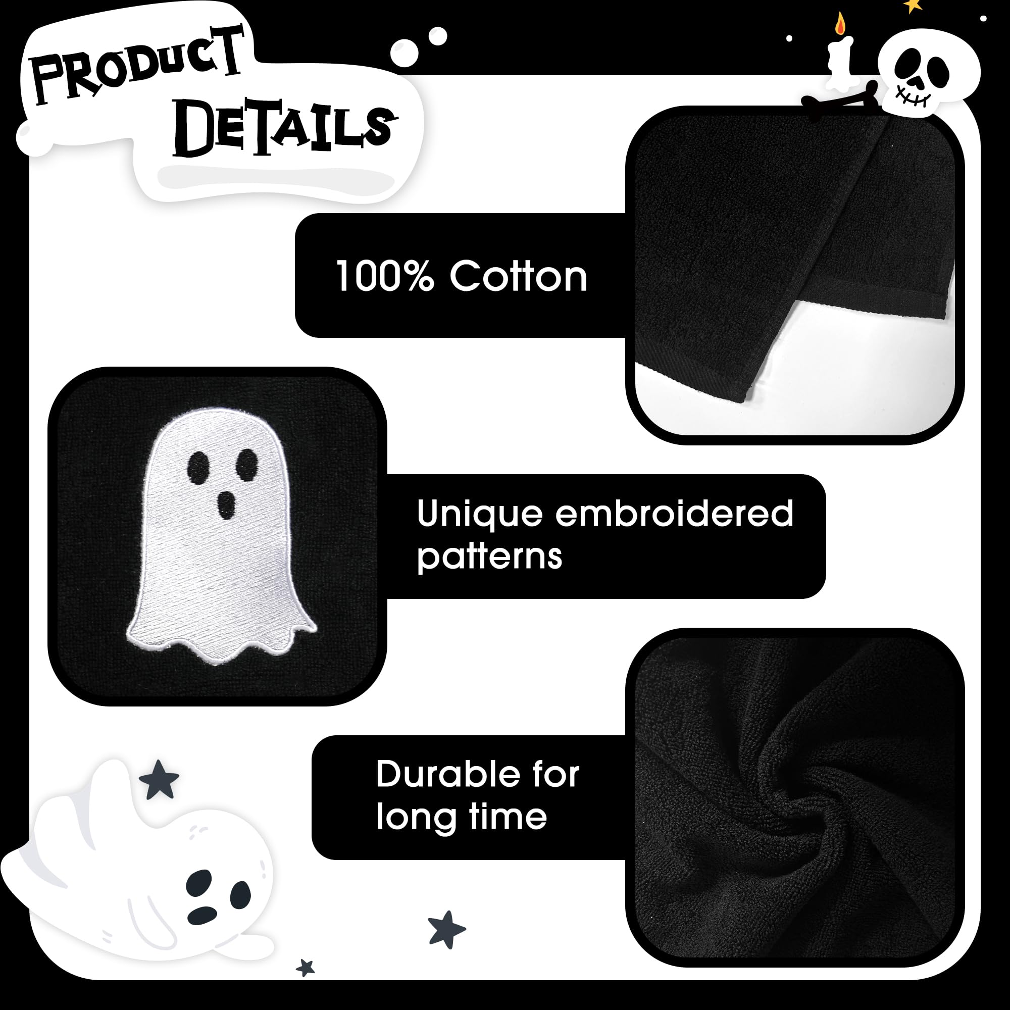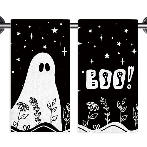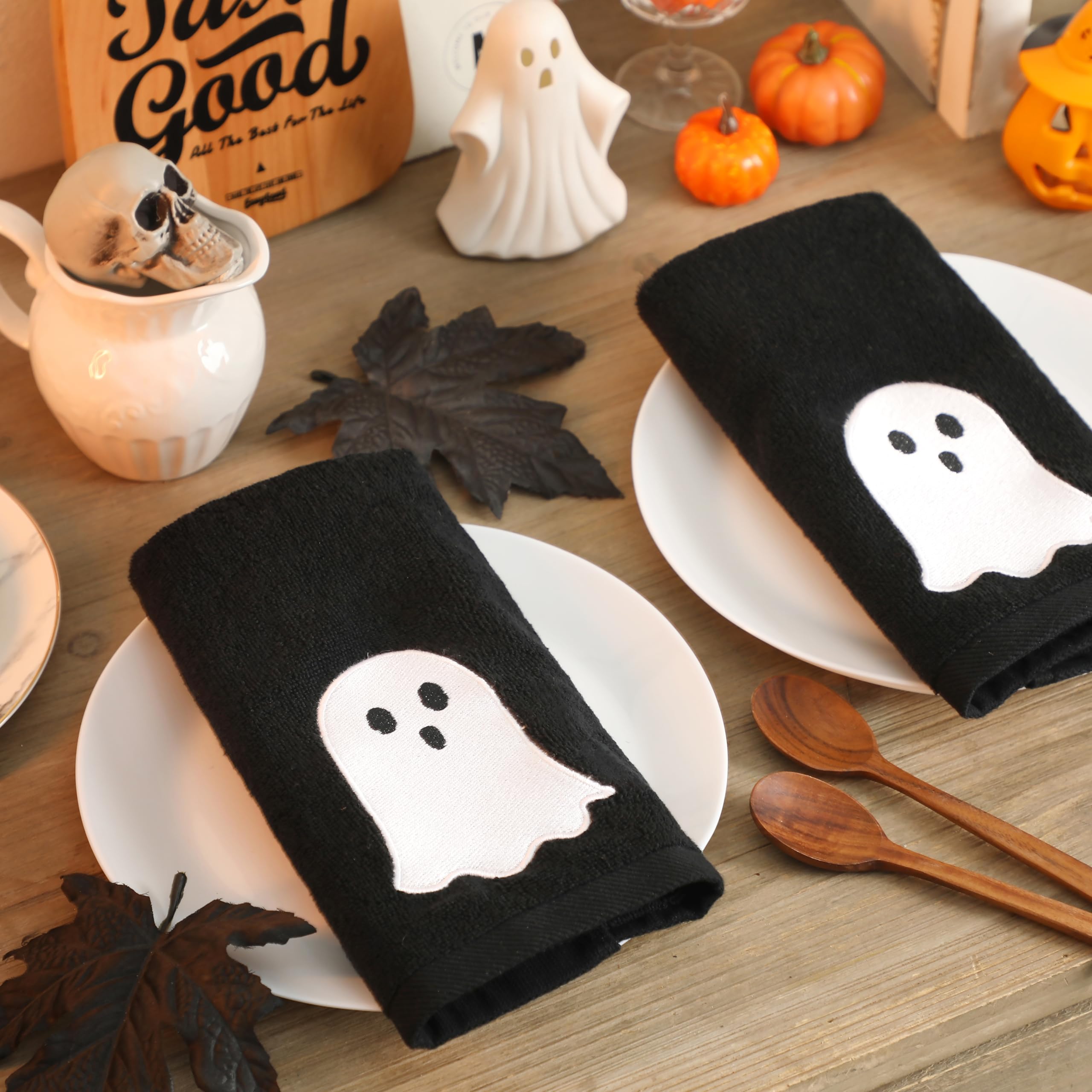 Essuie-Mains Doux Pour Salle De Bain, Cuisine, Yoga, Salle De Sport, Serviettes Décoratives, Lot... boucle d’oreilles fantômes Pac-Man Essuie-mains Fantômes Effrayants, Décoration D'Halloween Essuie-mains fantôme d'Halloween pour salle de bain | Serviette décorative d'Halloween amusante à suspendre | Serviette de cuisine absorbante pour Halloween - Torchon de vaisselle pour la cuisine et