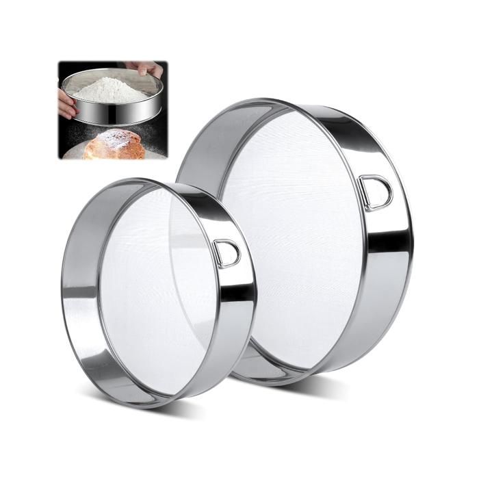 Tamis à Main Facile VFANDV Tamis De Farine Acier Inoxydable, 2 Pièces 15CM & 20CM De Tamis à Main Pour Gâteaux Biscuits Acier inoxydable de qualit alimentaire: Le tamis farine est en acier inoxydable et ne se corrode pas, ne se plie pas et ne se dforme pas. Il peut tre en contact direct avec les aliments et ne contient aucune substance nocive, ce qui garantit la scurit et la sant Tamis Inox 304 Inox VFANDV Lot De 2 - 15cm/20cm 60 Mailles P Tisserie T 1203810 Emballage: il y a 2 tailles différentes de tamis circulaires de 15 cm / 20 cm de tamis à farine rond pour la pâtisserie. Tamis à Farine en Acier Inoxydable 304 - SHIPENOPHY - 15cm - Maille... Polyvalent: idéal pour tamiser la farine avant de préparer du pain, des gâteaux, des pizzas et des biscuits. Acier inoxydable de qualité alimentaire: tamis à farine à mailles fines de haute qualité avec une bonne résistance à la corrosion, résistance à la chaleur, pas facile à rouiller ou à déformer, réutilisable. Facile à utiliser: Tenez le bord avec deux mains et secouez doucement, ou frappez le bord du tamis à farine avec une main pour filtrer facilement les impuretés. Spécifications: Matériel: acier inoxydable 304 Taille: Comme le montre l'image 1., Le tamis à farine peut être utilisé directement en contact avec les aliments, sûr à utiliser., 2., La grille de cuisine est méticuleuse et uniforme, facile à utiliser, la pâtisserie a un meilleur effet de stratification et de goût., 3., Le tamis de cuisine en acier inoxydable est l'assistant de cuisine idéal pour tout amateur de pâtisserie.