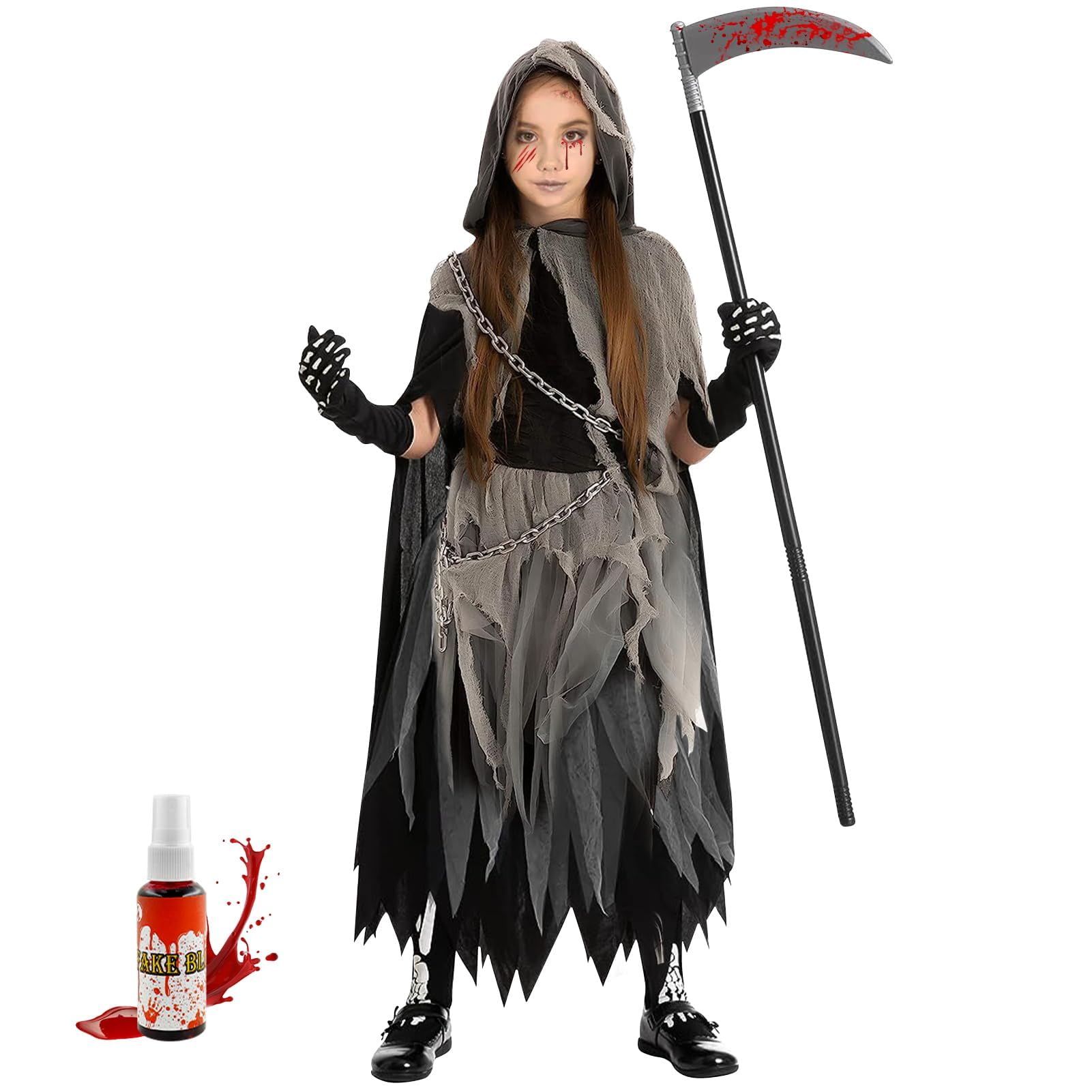 Accessoire Faucille Mitaines Squelette Déguisement Halloween Faucheuse Robe Mort Noire Fille 3-12 Ans Fête Déguisement Squelette JOYUE Déguisement Faucheuse Enfants Halloween Cape à Capuche Noire Enfants Robe Faucheuse Costume De Faucheuse Halloween Deg Amz Ctxtqtdt Faucille Halloween 35cm, Faux Faucheuse dhalloween, Faucil... La combinaison parfaite pour se démarquer lors de l'Halloween. 【Tissu Haute Qualité】- Notre costume faucheuseest fabriqué en 100% polyester confortable pour un maximum de confort et de durabilité. Ce faucheuse halloween d'âmes est cousu avec le plus grand soin pour garantir une utilisation prolongée. 【Halloween Costume de la Faucheuse】- Notre déguisement faucheuse ensemble comprend un 1 costume faucheuse enfant, 1 faucille halloween,1 paire mitaines squelette, 1 chaîne, 1 collier squelette et 1 feuille autocollant fluorescent. 【Costumes d'Halloween Effrayants Enfants】- Notre ensemble de costumes de faucheuse est un costume d'Halloween effrayant mais amusant pour les filles, les garçons et les adolescents. Pour tous les déguisements de cosplay et les jeux de rôle, ce cape de faucheuse sera très utile pour dépeindre l'essence d'un personnage. Vous pouvez rendre le personnage de votre enfant encore plus réaliste en l'associant à des accessoires de costume de faucheuse. Pour que votre enfant soit le plus effrayant à Halloween, nous vous proposons un fantastique déguisement de faucheuse. Le costume de faucheuse se compose d'une longue robe noire avec capuche. Les autres accessoires ne sont pas inclus