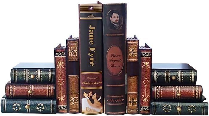 Cadeaux décoratifs vintage : offrez cette décoration vintage de livre de table basse à votre famille, vos amis ou vos amateurs de livres et ils sentiront votre cœur à Noël ou à un anniversaire. Faux Livres Décoratifs Faux Livre Decoration 7 Pièces Livres Décoratifs Pour La Décoration De La Maison, Faux Livres Pliables Faux Livre Decoration Luxe Accessoires De Décoration Intérieure Caractéristiques : 1., Haut degré de simulation, simulation parfaite de vrais livres., 2., Processus de bronzage, durable, élégant et magnifique., 3., Apparence exquise, pleine d'atmosphère artistique., 4., Il peut être utilisé comme décoration d'étude et de salon, et comme accessoire pour la photographie., 5., C'est un cadeau parfait pour une pendaison de crémaillère pour la famille et les amis. Boite en faux livres | Antiquités Anne Marie Perrier Taille S : Largeur : environ 15,5 cm., Hauteur : environ 21,5 cm., Épaisseur : environ 4,5 cm. Contenu : 1 livre décoratif (couleur aléatoire)., Remarques : 1., La couleur de l'article peut varier de celle de la photo, en fonction des paramètres d'affichage et de luminosité de votre ordinateur., 2., Les mesures étant prises à la main, les tailles indiquées peuvent varier légèrement. Serre-Livres décoratifs Vintage en Bois - Faux Serre-Livres - pour... Poids : Taille L : environ 134 g., Petit : environ 100 g. Caractéristiques : Nom : livre décoratif. Tons neutres : design rétro simple avec des éléments de mode modernes. Bibliothèque décorée de faux livres | Le Fleuron du Cuir Matériau : papier + processus de bronzage. Décoration de ferme : ce faux livre est un excellent ajout à la décoration rustique, shabby chic, vintage ou rustique.
