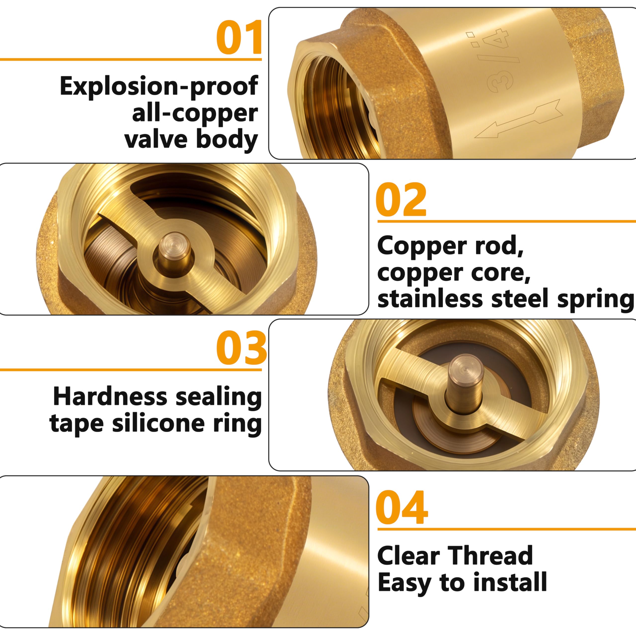 Filetage Intérieur Laiton Clapet Anti-retour, Filetage Femelle En Laiton, Clapet Anti-retour 3/4 Clapet Anti-retour Laiton 3/4 DN20 Adapté aux environnements haute pression – Grâce à sa construction robuste et à son laiton de haute qualité, le clapet anti-retour résiste à des pressions allant jusqu'à 1,6 MPa Clapet Anti-Retour, Clapet Anti-Retour à Battant DN20 232PSI 3/4 Femelle Clapet Anti-Retour d Large gamme d'applications : résiste aux températures élevées et basses et convient pour les pompes de jardin, les fontaines de saut, les eaux usées des machines à laver et d'autres systèmes de tuyauterie, ce qui permet d'éviter efficacement les problèmes de refoulement. Clapet anti-retour en laiton 3/4, DN20 avec filetage intérieur, valve de retour 1,6 MPa pour pompe, clapet anti-retour 3/4, pour pompe de jardin, fontaine... Contenu : clapet anti-retour en laiton 3/4 x 1 ; vous pouvez nous contacter avant et après l'achat, nous résoudrons votre problème dans les 24 heures suivant la réception de votre message Il est adapté pour une pression d'eau allant jusqu'à 1,6 MPa. Facile à installer : ce clapet anti-retour a une structure simple et est facile à installer. Taille standard : ce clapet anti-retour en laiton 3/4 DN20 est fabriqué par des instruments de haute précision en stricte conformité avec les tailles standard, vous pouvez l'acheter en toute confiance.