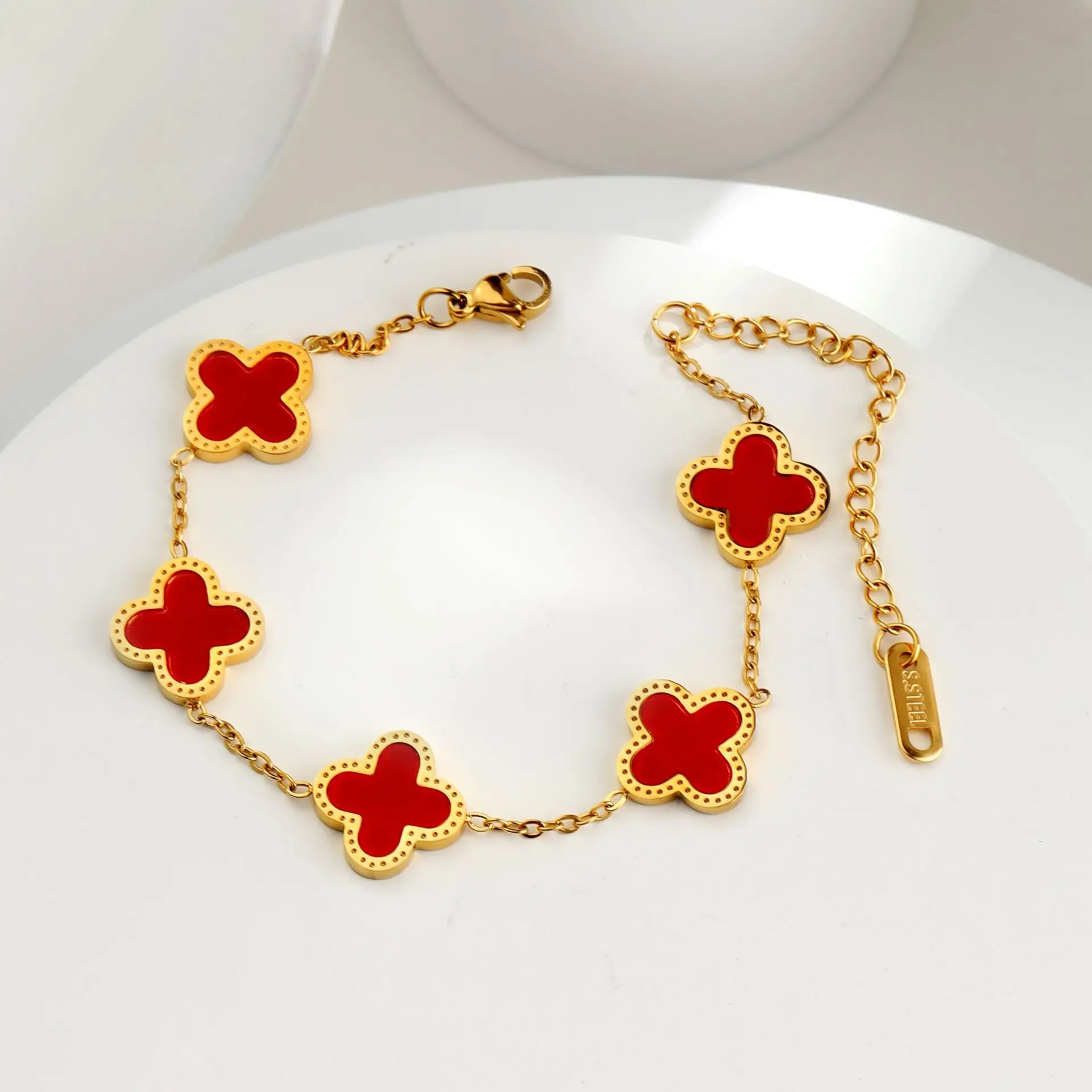 Symbole de chance : Le trèfle à quatre feuilles est un symbole de chance, tandis que le trèfle à cinq feuilles est plus porte-bonheur que le trèfle à quatre feuilles. Ce bracelet est confortable à porter, surtout pour les peaux sensibles, et dit adieu aux poignets verts ! Bracelet à 4 Feuilles Femme MeeQee 4 Pièces Bracelet Trèfle Femme 18K Plaqué Or Réglable Bracelets En Acier Inoxydable Trèfle à Quatre Feuilles Tennis Bracelet Set Zirconia Empilable Chanceux Bijoux Pour Femme Filles (Noir Bracelets Acier Inox Réglables Artisanat raffiné : Ce bracelet empilable est fabriqué en acier inoxydable avec un savoir-faire exquis. Il ne rouille pas et ne se décolore pas, vous pouvez... Motif trèfle à cinq feuilles : Ce bracelet présente un motif de trèfle à cinq feuilles disposé à intervalles réguliers. 4 Pièces 18K plaqué or trèfle à quatre feuilles bracelets ajustables empilables bracelet set Convient aux femmes Matériau : Acier inoxydable Couleur : Or, noir, blanc Éléments populaires : Trèfle à quatre feuilles, oxyde de zirconium Style : Tendance/élégant Design : Trèfle à quatre feuilles, or laser, galvanoplastie, bracelet ajustable, plaqué or 18 carats, fermoir caché, fermoir à bouton-poussoir, bracelet avec oxyde de zirconium, joncs à anneaux Conseils d'entretien des bijoux : 1., Ne pas porter sous la douche., 2., Ne pas mettre en contact avec le gel douche, le détergent ou l'eau de mer., 3., Lorsque vous ne portez pas vos bijoux, rangez-les dans un sac hermétique pour éviter l'oxydation et le noircissement au contact de l'air., 4., Évitez de les porter lorsque vous transpirez beaucoup et retirez-les lorsque vous faites du sport., 5., Évitez de les porter pendant votre sommeil. Artisanat raffiné : Ce bracelet empilable est fabriqué en acier inoxydable avec un savoir-faire exquis. De plus, il peut également être offert lors des doux moments que vous passez ensemble, comme les dîners romantiques, les rendez-vous surprises ou les jours spéciaux, faisant de ce cadeau une partie de ses beaux souvenirs. Selon la légende, le trèfle à quatre feuilles symbolise la chance. N'hésitez pas à les acheter. Rencontrez le trèfle à cinq feuilles et découvrez le bonheur. Pour toute question, n'hésitez pas à me contacter ; nous ferons de notre mieux pour vous aider. Vous cherchez un bijou trèfle 4 feuilles qui allie symbolisme ancestral de la chance et élégance moderne ? Découvrez notre collection raffinée, où chaque collier, bracelet ou bague trèfle en argent ou plaqué or incarne la prospérité et le bonheur, avec livraison gratuite On ne trouve qu'un seul trèfle à quatre feuilles parmi 100 000 perles de trèfle à trois feuilles, et la probabilité d'en voir naître un est d'une sur 250 000., Le bracelet trèfle à cinq feuilles représente une chance accrue. Il apporte un design unique et éclatant à la silhouette et peut également porter chance. Nous offrons le meilleur service à nos clients. 5 Bracelets Trèfle 925 argent 18k or plaqué Nacre Malachite
