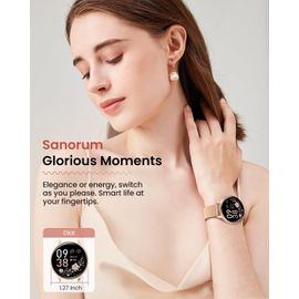 Le suivi à long terme de ces données permet de mieux comprendre votre état physique, de détecter d'éventuels problèmes de santé et d'apporter un soutien aux personnes soucieuses de leur santé. Personnalisable à votre guise Enregistre précisément chacun de vos défis 24/7 Suivi de Santé: Cette montre connectée femme surveille la fréquence cardiaque, la tension artérielle et l'oxygène dans le sang, et enregistre vos données de santé 24/7., Elle fait également office de suivi sommeil, enregistrant la durée de vos différents niveaux de sommeil et fournissant des informations intuitives sur la qualité de votre sommeil. Son écran entièrement tactile et son revêtement anti-traces de doigts procurent un confort tactile optimal. En même temps, cette montre de sport peut également analyser votre état de sommeil (sommeil profond, sommeil léger, période paradoxale) pour vous aider à avoir un aperçu des tendances de votre corps tout au long de la journée La fonction Cadran personnalisé permet aux utilisateurs de personnaliser leur cadran pour affirmer leur style unique. Le microphone et le haut-parleur intégrés permettent les appels HD, assurant une transmission vocale claire, même en milieu bruyant. Description du produit La vie intelligente éclot à votre poignet Montre Femme Connectée Sanorum Avec Appel, 1.39" HD Smartwatch Montre Connectée Femme Montre Connectée Femme Avec Appel Bluetooth,1.43Hd Amoled Smartwatch... Connectez ensuite votre téléphone via Bluetooth pour synchroniser les données et rendre vos exercices plus efficaces et pratiques. Elle enregistre avec précision les données d'exercice, telles que le nombre de pas, le temps et les calories dépensées. 120+ Modes Sportifs: Cette montre fitness prend en charge divers modes d'exercice pour répondre à divers besoins. La batterie de 300 mAh offre une utilisation pratique, permettant aux utilisateurs de profiter des autres fonctionnalités de la montre sans souci ni effort. taopodo Montre Connectée Femme, 1.91" HD Smartwatch Fonction Féminine avec Appel Bluetooth 5.4 Portez la montre pendant l'exercice sans emporter votre téléphone. Elle prend également en charge la synchronisation avec les applications mobiles pour une gestion pratique de la vie quotidienne et de la santé. Appels, SMS ou notifications de réseaux sociaux : tout se gérer directement sur votre montre, sans avoir à consulter constamment votre téléphone. Avec un poids de 29 g, cette montre connectée légère et facile à porter s'adapte parfaitement à l'élégance féminine.