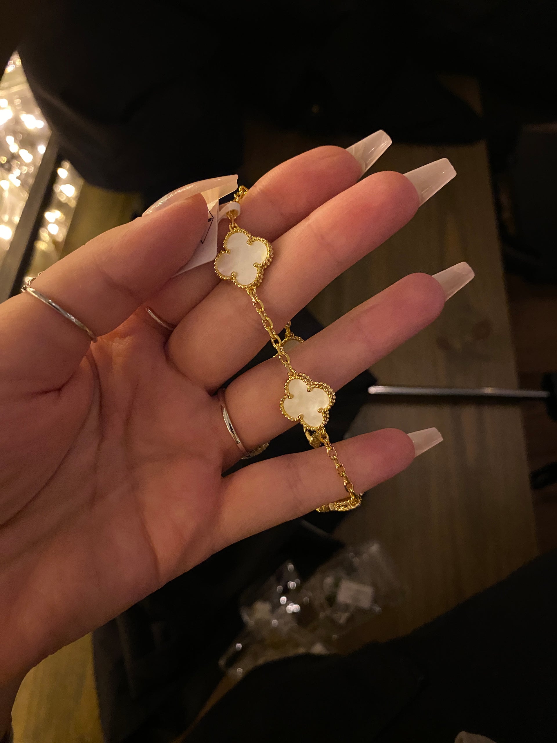 Bracelet Hypoallergénique Empilable Cadeau CHAOTEMAI Bracelets Trefle, Bracelet Trefle 4 Geuilles Femme Bracelet Trèfles Porte-Bonheur Plaqué Or 18 Carats Pour Mariages Anniversaires Fêtes Et Cadeaux Chanceux, Saint-Valentin Noël Fête (Blanc Bijou Ajustable Zircon Doré TENGWA Plaqué 18K Bracelet Femme 2 Pièces Bijoux Trèfle Porte-Bonheur Blanc Cadeau Femme Bracelets Empilables pour Les Mariages Anniversaires Saint-Valentin et Nouvel An SUNSH Collier Trèfle porte-bonheur Plaqué or 18K en Blanc acier inoxydable 316L hypoallergénique... Que ce soit comme bracelet avec anneau ou chaîne main en or, ce bijou convient parfaitement au quotidien et aux événements3., Finition brillante avec des matériaux de haute qualité: Ce bracelet est composé de matériau plaqué or 18K de haute qualité, durable, respectueux de la peau et hypoallergénique. Symbole de style et de chance: Ce bracelet élégant relie avec finesse un bracelet à anneau avec un délicat bracelet orné d'un trèfle à quatre feuilles. Le design raffiné symbolise la chance et l'harmonie - idéal comme bijou d'été pour femmes ou bijou de main en or pour des occasions spéciales 1., Symbole de style et de chance: Ce bracelet élégant relie avec finesse un bracelet à anneau avec un délicat bracelet orné d'un trèfle à quatre feuilles. Que ce soit comme bracelet avec anneau ou chaîne main en or, ce bijou convient parfaitement au quotidien et aux événements Finition brillante avec des matériaux de haute qualité: Ce bracelet est composé de matériau plaqué or 18K de haute qualité, durable, respectueux de la peau et hypoallergénique. Une idée cadeau spéciale pour les femmes: Ce bracelet est un cadeau attentionné pour un anniversaire, un anniversaire de mariage ou une remise de diplôme. 18k Or Plaqué Hip Hop Grillz Dents, Dents Grillz Pour Hommes Femmes, macro Pave Cz Iced-out...