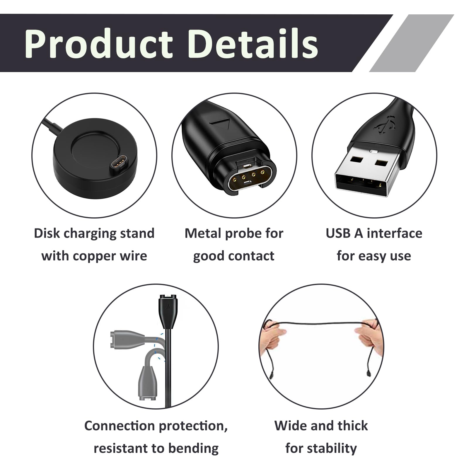 Pour la sécurité, il intègre un régulateur de tension et un PTC interne pour protéger contre les surtensions, surintensités et courts-circuits. Chargeur dock 3.3ft Compatible avec Garmin Vivoactive 3/Vivoactive 4S 【Design Compact et Portable】: MLéger et facile à transporter, ce chargeur montre vivoactive 5 est idéal pour les voyages, les déplacements professionnels ou l’utilisation quotidienne. Accessoire Recharge Montre Garmin 2 Pièces Cable Chargeur Compatible Avec Garmin Fenix 7/6/5 Forerunner 965 Et Venu, Câble USB 1M Pour Chargement Rapide, Durable Et Sécurisé, Pour Smartwatch Garmin Câble Charge + Bouchons Poussière Cable Montre Garmin Vous pouvez profiter d’une charge rapide et stable, idéale pour les utilisateurs actifs et les voyageurs qui ont besoin de garder leurs montres opérationnelles en permanence. Cette protection intelligente assure que vos montres restent en parfait état tout en recevant une charge optimale à chaque utilisation. Chargeur Compatible avec Garmin Fenix 7 7X 6 6X, Vivosmart 5, Instinct... 【Compatibilité Universelle】: Ce câble chargeur est compatible avec une large gamme de montres , y compris les séries Fenix, Forerunner, Vivoactive, Vivosmart, Vivomove, Venu, Instinct et Approach, ainsi que les modèles DS et Vivoactive 5, offrant une solution de recharge universelle 【Charge Rapide et Efficace】: Grâce à sa conception avancée, ce chargeur peut être utilisé avec un adaptateur secteur, une banque d'alimentation, un ordinateur ou un chargeur de voiture, fournissant une charge stable et rapide tout en maintenant les performances optimales de votre smartwatch 3pcs Adaptateur de Chargeur de ontre Intelligente Copatible avec... Que ce soit pour les voyages, les activités sportives ou un usage quotidien, votre montre sera toujours prête à l’emploi. Compact et léger, le design pratique de ce câble vous permet de l’emporter partout. 【Matériaux de Haute Qualité】: Fabriqué avec un fil de cuivre pur et des matériaux ABS + PVC durables, ce câble chargeur montre assure une transmission de courant stable, une charge rapide et fiable, et garantit une longue durée de vie pour protéger votre montre contre les dommages électriques Ce câble est fabriqué avec des matériaux de haute qualité, incluant un fil de cuivre pur et un revêtement ABS + PVC durable, garantissant une transmission de courant stable et une protection contre les dommages. Sa conception pratique permet de l’emmener partout tout en garantissant une charge fiable à tout moment