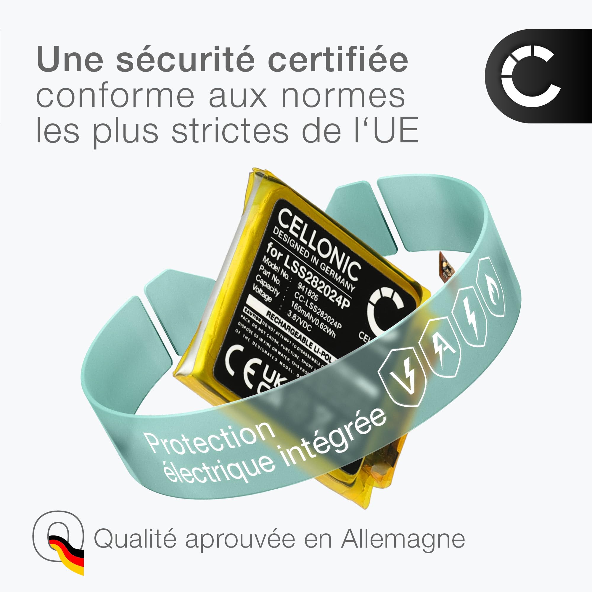 Conçue pour la fiabilité – Testée selon des normes strictes en Allemagne pour garantir durabilité et efficacité. Si l’original est collé, soudé ou en cas de doute, mieux vaut faire appel à un professionnel. Bracelet Versa 4 Garmin Fenix 7 CELLONIC, Batterie Pour Montre Intelligente Et Batterie Fitbit Versa 4 Consultez la liste complète des modèles compatibles dans la description du produit. Haute capacité & alimentation fiable – 160mAh d’énergie efficace et durable pour prolonger la durée de vie de votre appareil. Un remplacement fiable offrant un excellent rendement Puis-je utiliser une batterie de capacité supérieure ou inférieure ? Oui- à condition que la tension et le modèle soient compatibles. Les batteries Cellonic sont-elles sûres? Oui. Puis-je remplacer ma batterie moi-même? La plupart des batteries se remplacent facilement avec des outils simples. Une alternative fiable pour éviter le coût d'un remplacement complet Nos batteries répondent à des normes de haute qualité, garantissant une alimentation sûre et durable, souvent avec une meilleure disponibilité. Nous utilisons des cellules haut de gamme avec un système de protection intégré. Alternative économique avec des performances égales ou supérieures à l’original Si votre appareil y figure, la batterie est parfaitement adaptée - aucun adaptateur n'est nécessaire. HAUTE CAPACITÉ ET GRANDE LONGÉVITÉ - Avec la haute capacité de 160mAh, cette batterie performante fournit la puissance dont vous avez besoin en toute situation Haute capacité & alimentation fiable – 160mAh d’énergie efficace et durable pour prolonger la durée de vie de votre appareil. Choix intelligent & économique – Remplacer la batterie prolonge la durée de vie de votre appareil et réduit les interruptions. La batterie est- elle compatible avec mon appareil ? Faites correspondre le modèle et la référence de la batterie à notre liste Compatible avec. Batterie 261827, R-41021555 150mAh Pour FitBit Versa FB504 Fb505 261827 R 41021555 150mah 936763